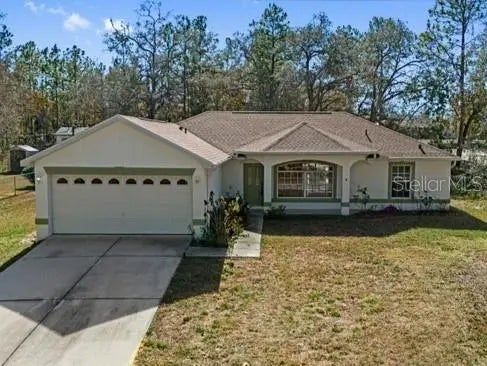 Welcome to your new home! This charming 3-bedroom, 2-bathroom home with a 2-car garage, set on a spacious 1/2 acre in the peaceful Royal Highlands, offers a serene retreat with a beautiful, tree-filled backyard. As you approach, you'll notice the brand-new roof (installed in 2024), adding to the home's curb appeal. Inside, a bright family room with cathedral ceilings, a front hall closet, and built-in shelves creates a welcoming space. The spacious primary suite features a large walk-in closet and en suite bathroom, offering privacy in this true split floor plan. The kitchen, with stainless steel appliances, opens to an informal dining space and back to the family room. Two additional bedrooms and a hall bath are on the far side of the home. Enjoy Florida living on the large back patio, perfect for relaxing outdoors. There's even a large shed in the backyard with countless possibilities! With recent updates including fresh carpet, a new roof, and a 2020 A/C unit, this home is move-in ready. Don’t miss out—schedule your showing today and make this peaceful retreat yours!