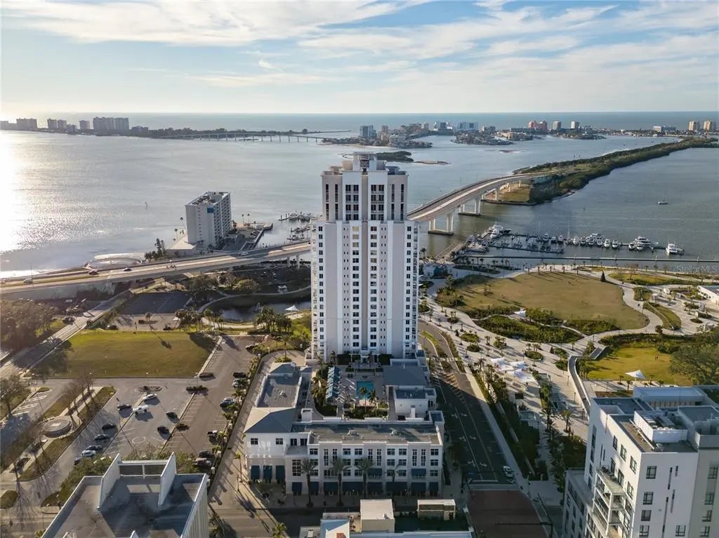 A downtown condo tower residence that is close to restaurants, Capitol Theatre, marina, Coachman Park/The Sound and more. Featuring the expected amenities (pool, steam room, workout/exercise facility, barbecue) in this well-constructed building, it offers views of the water and the sunsets most of the year.