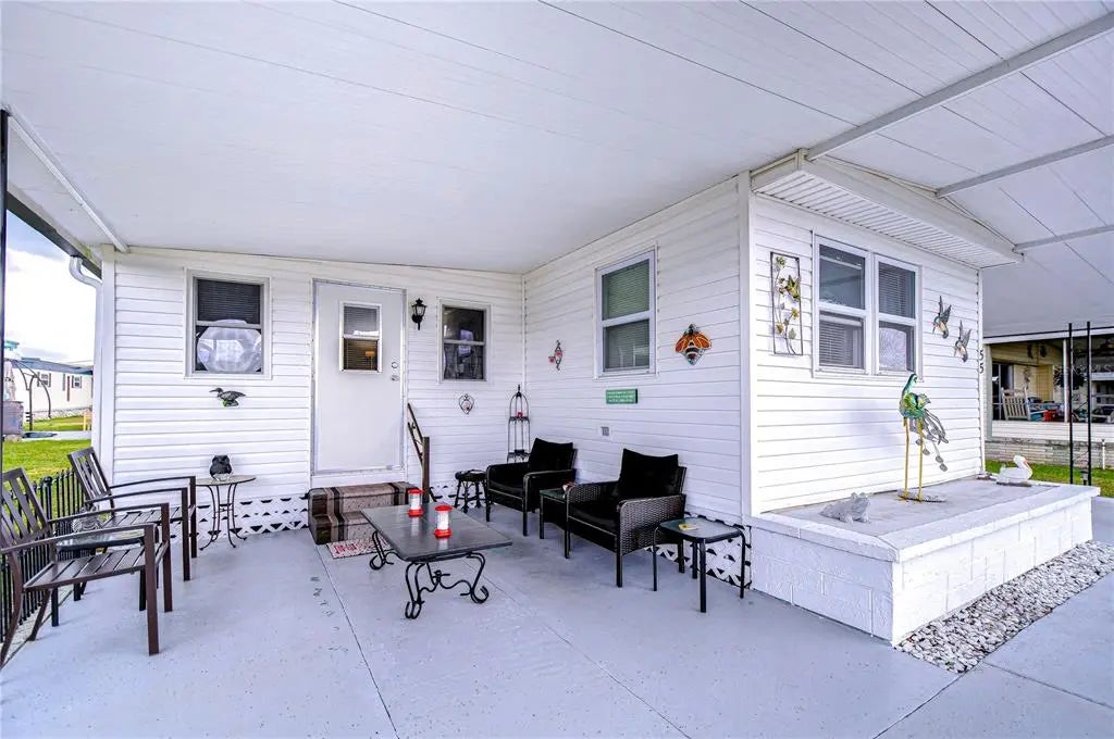 All you need to bring are your personal items and clothing. Furnished home ready to go. It can be your seasonal or year-round home. On the outside you have a furnished side screen porch plus a patio with fire pit in the rear of home for your enjoyment. The shed on the porch/carport area has the laundry area. From the side entrance enter into the updated, inviting kitchen. Newer appliances including a dishwasher. Extra countertop space plus a small eating area. Toward the rear of the home the hallway has an extra closet area. The full bath has also been updated with a walk-in shower. The rear bedroom has a wall of built-in closet area. On the other side of the kitchen, you will find the dining room which leads into the front bedroom and the half bathroom. The living room is an addition that also has the central heat and air ducted into it. Located toward the rear of the park but still near the clubhouse and pool. Park currently has evenings with entertainment at the clubhouse. Inviting senior community with a variety of planned activities. Great location for trips to Tampa, Lakeland or the beach. Call now for a chance to view this light and bright home before it is gone.