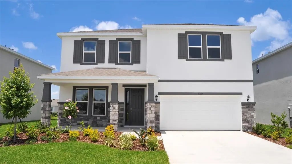 MOVE IN READY! Receive up to $20,000 towards closing costs and special interest rates with our preferred lender NOW until June 22. This two-story, all concrete block constructed home has a large open concept first floor with a kitchen overlooking the great room, dining area, and a covered lanai. A flex room at the entrance of the home, as well as a spacious guest bedroom and full bathroom, complete the first floor. Upstairs, Bedroom 1 with ensuite bathroom, three additional bedrooms, a third full bathroom, and a well-appointed laundry room surround a large bonus living room. This home comes with an installed stainless-steel dishwasher, electric range, and microwave. Pictures, photographs, colors, features, and sizes are for illustration purposes only and will vary from the homes as built. Home and community information including pricing, included features, terms, availability, and amenities are subject to change and prior sale at any time without notice or obligation. Room Feature: Linen Closet In Bath (Primary Bedroom).