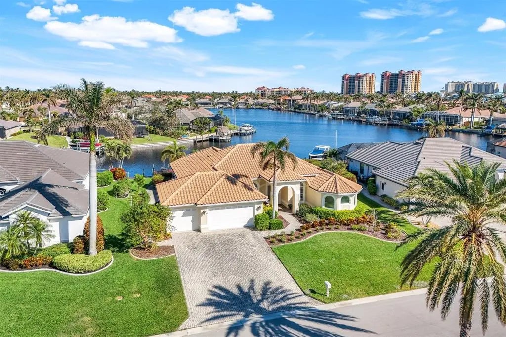 Welcome to your tastefully updated Gulf Access home located in the coveted boating community of Cape Harbour! This luxurious home embodies waterfront living at its finest with new 10’ impact pocket sliding doors along the rear of the home allowing for plenty of light and expansive waterviews from the foyer, kitchen, living and primary bedroom suite. Entertaining is easy in your gourmet kitchen with wall oven and microwave, cooktop, solid wood cabinetry, granite counters, and dining nook overlooking the pool. The split bedroom floorplan provides privacy for owners and guests, with the owner’s suite featuring a tray ceiling with recessed lighting and a cozy sitting area with french doors leading to the lanai. The ensuite features two walk-in closets and showcases a large soaking tub with walk-through shower, dual vanities, linen closet, and private water closet. Swim year-round in your electric heated SALTWATER pool and spa with room under truss for outdoor living. Boat dock was recently stained and features a 27k lb boat lift. Notable updates include tile roof (2020), pool pump (2022), plank tile flooring (2022), and hurricane impact sliding doors (2022). This is your opportunity to live the Florida life--schedule your private tour today!