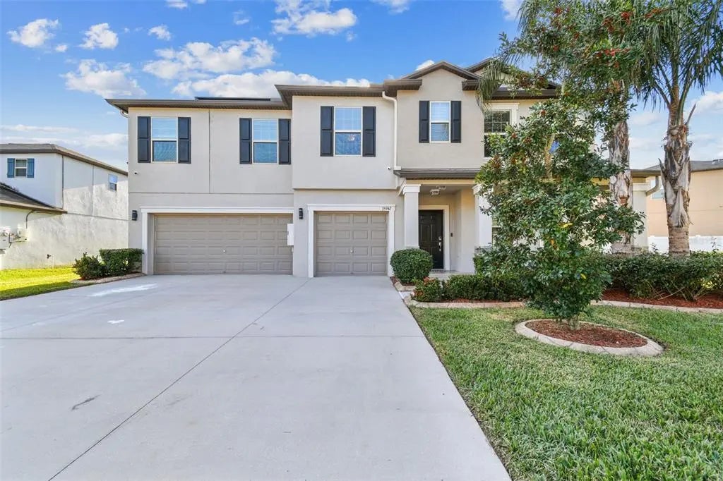 Relish the Florida lifestyle in this stunning pool home and incredible outdoor kitchen. The 3,354 square feet provides space for everyone, with five bedrooms, four baths, loft, flex room and a three-car garage, finished with epoxy flooring and two car EV charging station. The kitchen features an oversized pantry and 36-inch nutmeg cabinetry, with the open floor plan opening up to the large living area with an electric fireplace and informal dining room. The formal dining and flex space, and a first-floor bedroom and full bath complete the first floor. On the second floor, there is the primary suite boasting a huge walk-in closet and spacious bath with separate vanities and a secondary suite complete with en-suite bath and walk-in closet, and two more bedrooms and full baths. The huge loft will quickly become your favorite area whether you are enjoying movie nights, workouts or reading in relaxation. The showstopper is the stunning pool and outdoor kitchen. Through the sliding glass doors, the sound of the fountain welcomes you to the tropical oasis. The expansive French pattern travertine deck provides various shaded seating options, including watching the Sunday games poolside. The Pebble Tec finish pool contains two conversational benches and lighting. The outdoor kitchen is composed of a propane grill, drawers, mini refrigerator and space for a Green Egg or Kamado. The outdoor island contains a custom cut propane Fire Table for intimate gatherings. The full-screen enclosure keeps the bugs away and the zoned drip system reduces the maintenance. Silverado Ranch offers great amenities including high-speed internet, cable, a resort-style pool, Florida-style clubhouse, dog park and playground. Seller is offering $10,000 toward Buyers Closing Costs with an acceptable offer.
