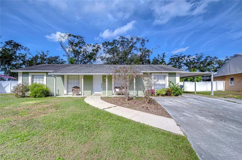 Step into this charming single-story block home nestled in the heart of the well-established Logan Gate community, ideally located on the border of Carrollwood and Citrus Park. This delightful residence offers 3 bedrooms, 2 full bathrooms, and 1,485 sq ft of heated living space, thoughtfully designed for comfort and convenience. As you approach the property, you'll be greeted by a cozy front porch, a spacious driveway, and a single carport. The generous 80x104 ft property is fully enclosed by a durable vinyl fence with dual gates and a back privacy wall. A concrete block storage shed with an adjoining carport offers additional storage solutions. Step into the backyard oasis, where you'll find a covered and screened lanai with bottom kickplates, dual screen doors leading to brick-paved patios with pergolas on either side—perfect for hosting outdoor gatherings or relaxing after a long day. Another pergola graces the back lawn, adding to the home’s charm and functionality. Inside, you'll be greeted by a welcoming foyer that flows into a spacious great room with vaulted ceilings, laminate flooring, and an abundance of natural light. A convenient hall closet adds extra storage. Just ahead, the café area features French doors that open to the lanai while a counter-height breakfast bar connects the café area to the well-appointed kitchen. The kitchen hosts a pantry, and a full suite of appliances, making meal prep a breeze. A kitchen door offers direct access to the patio. Adjacent to the kitchen, is the dining room, which also includes a discreetly placed laundry area tucked behind bi-fold doors. The private bedroom wing includes a primary suite with a large walk-in closet and an ensuite bath, along with two additional bedrooms and a second full bath. This home’s prime location ensures quick access to top-rated schools, including Sickles High School, Citrus Park Mall, Upper Tampa Bay Trail, Veterans Expressway, Tampa International Airport, and an array of shopping and dining destinations. Residents of Logan Gate enjoy community amenities such as parks, playgrounds, lakes, a dog park, and scenic walking paths. With NO HOA, this property offers the freedom to truly make it your own. Don’t let this incredible opportunity slip away—schedule your viewing today and start living the dream in Logan Gate! At the Buyer's discretion, furniture may remain.