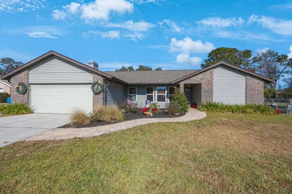 Welcome to the quiet neighborhood of Springwood Estates! This charming ranch-style pool home is now available and waiting for its new owner. Situated on a generous lot, the property features a refreshing inground pool that serves as a focal point for outdoor relaxation and entertainment. Inside, you will find a spacious layout with a living and dining area with vaulted ceilings. The heart of the home is the entertainment space featuring an open kitchen overlooking a cozy family room with a wood-burning fireplace and a view of the inviting pool. Three sets of sliding glass doors connect the master suite, dining room, and family room to the pool area, seamlessly blending indoor and outdoor living. The pool deck features stone pavers and a screened-in lanai. The kitchen boasts stainless steel appliances, ample cabinetry, pantry, and a generous breakfast bar, ideal for casual dining. The primary bedroom, thoughtfully positioned for privacy in this split floor plan, includes a private ensuite with vanity sink, a walk-in closet, and a walk-in shower with a separate garden tub. The second spacious bedroom and a guest bathroom provide plenty of space to accommodate family and guests with ease. A possible third bedroom with two large closets offers both comfort and style in a desirable neighborhood with other large homes on large lots. Step outside to embrace the Florida lifestyle. Bask in the warmth of the sun by the sparkling pool or enjoy a refreshing beverage on the spacious deck, perfect for entertaining friends and family. The large backyard includes a 10x16 storage shed, providing ample space for all your storage needs. This home offers everything you need for both relaxation and vibrant gatherings. Recent updates include a newer roof (2022), newer windows (2022), new etched glass front door 2022, new siding (2022), new refrigerator and dishwasher (2024). For the outdoor enthusiasts, the home is close to several parks and recreational areas, offering plenty of opportunities for hiking, biking, and enjoying the beautiful Florida weather. Easily accessible, this home offers exceptional convenience situated just 5 minutes from the Suncoast Parkway and 45 minutes to the beach. Enjoy an abundance of options when it comes to dining, shopping, entertainment, and other central Florida attractions. No HOA or CDD fees. Come see it for yourself and schedule your private showing today!