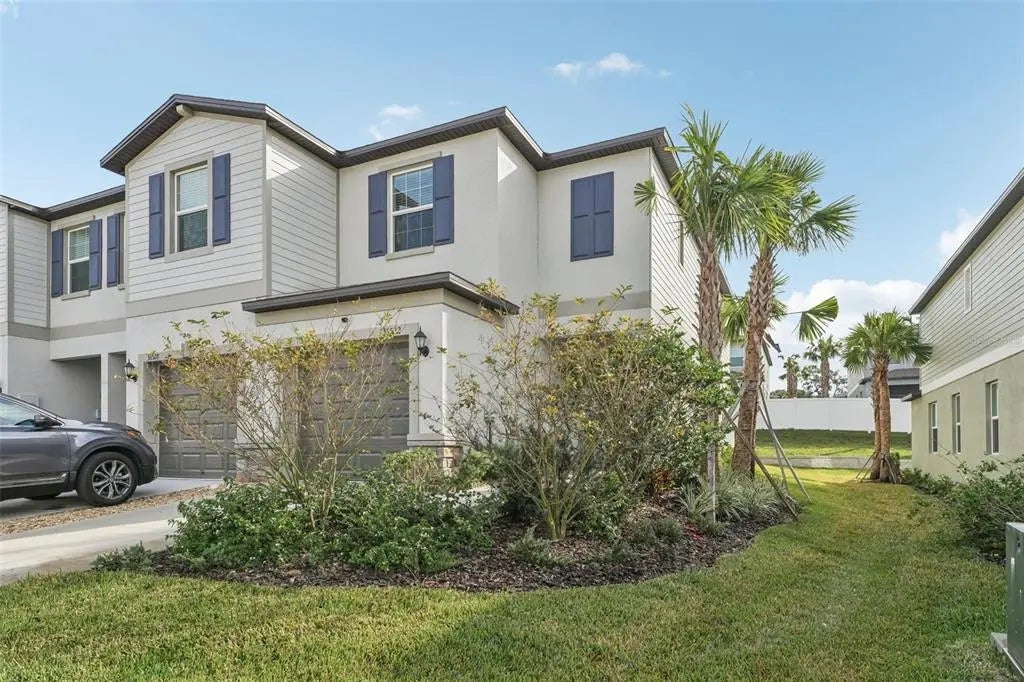 Welcome to Abbott Square a new master-planned community in Zephyrhills, FL. This townhouse was completed in 2024 and is less than one year old. It can be a great starter home or early retirement home. As an end unit it is very bright inside, and well designed. There is space to entertain downstairs and upstairs is a large Master bedroom along with guest bedroom, separated by a loft area (currently used as an office space) that separates the two. The covered and screened back patio as well as the garage floor have been protected with gorgeous epoxy coatings. The sellers are also including the Blink doorbell and cameras. In Abbott Square you can enjoy walking or bike riding along the hilly streets or go for a workout at the amenities center followed by a dip in the spectacular pool. For the serious tennis or pickle-ball player know that you are steps away from the professional tennis center located just outside the community. A short drive away is dining and shopping along Gall Blvd or take a ride to the Shops at Wiregrass, the Grove or Tampa Premium outlets. The beauty of this location is you can go to Tampa or Orlando with relative ease. Builder's warranty still in effect.