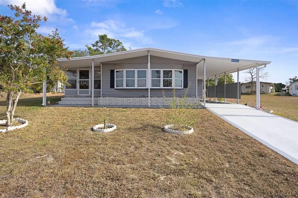 Welcome to this well maintained home! Recently painted exterior and driveway, complete with stylish driveway lighting, adds to the home's curb appeal. Enjoy the durability of concrete skirting, and take in the beauty of the bay windows that flood the home with natural light. The fully enclosed sunroom with beadboard paneling provides a serene space to start your day with morning coffee or unwind in the evening with afternoon cocktails. It's the perfect spot for relaxing or enjoying a friendly card game. The spacious master bedroom features an ensuite bathroom with a walk-in shower and one of the largest closets you'll find—ideal for storing all your golfing outfits and accessories. The home has LVP flooring throughout, with tile in the kitchen and dining room, offering both style and durability. Host family dinners in the elegant dining room, complete with a built-in china cabinet for added storage and display space. The utility room includes a workbench for all your DIY projects and plenty of additional storage space to keep everything organized. The home features a brand-new hot water heater, providing peace of mind for years to come. In addition to all the wonderful features of this home, you'll enjoy the added benefit of owning the land!! This home will come furnished. This home is a true gem, offering comfort, convenience, and space for all your needs.