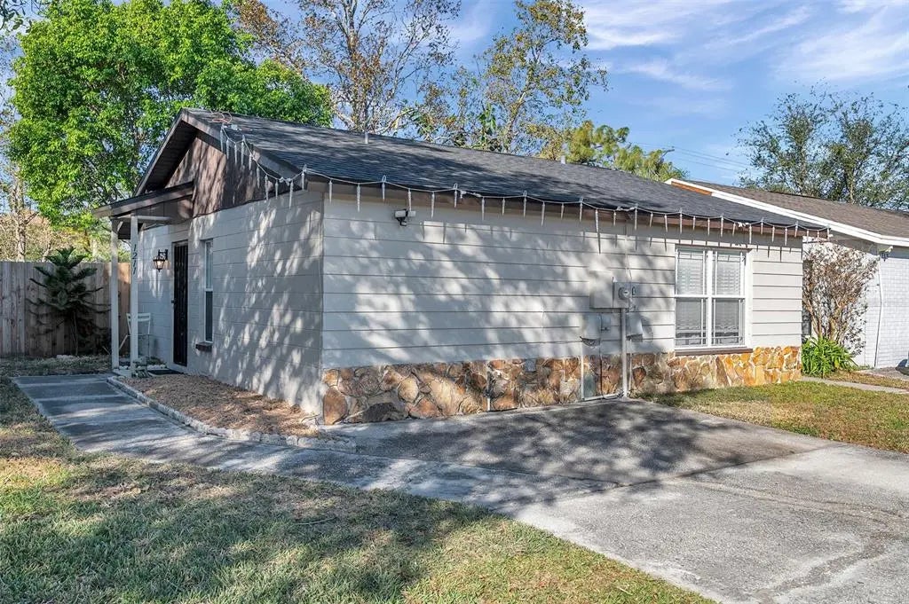 Welcome to this well maintained 2-bedroom, 2-bathroom starter home, ideally located at the front of the Heather Lakes community. Situated just a short walk from shopping centers, a gym, Aldi, and a variety of restaurants, everything you need is within easy reach. The home boasts a private, fenced-in backyard with an above-ground pool, making it the perfect spot for enjoying sunny days and relaxing evenings. Key updates include a new roof and AC (both replaced in 2021), providing peace of mind and efficiency. The updated stainless steel appliances in the kitchen add a sleek, modern touch, while the floors and blinds have been updated throughout, enhancing the overall appeal of the home. This Heather Lakes gem offers the ideal blend of location, updates, and outdoor space.