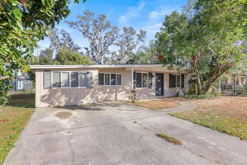 This delightful 1960s charmer offers a blend of character and modern updates, featuring two or three bedrooms (bedroom 2 leads into bedroom 3), two bathrooms, and 1,484 square feet of living space. The kitchen showcases original solid wood cabinets with updated hardware and sleek black appliances, providing a mix of vintage charm and contemporary style. The oversized primary bedroom boasts dual closets and a generously sized en-suite bathroom complete with a walk-in shower, linen closet, and a hardwood vanity with dual cultured marble sinks. The spacious family room offers versatile functionality, with a separate entrance to the front of the home, as well as access to the indoor laundry/utility room and the private backyard. The backyard includes a storage shed, offering extra convenience. Energy-efficient windows, roof (2016 rolled shingle) two HVAC units (both just 2 years old), and two water heaters (both 3 years old) ensure modern comfort and efficiency. The poured concrete driveway accommodates up to four vehicles. Centrally located, this home provides an easy commute to downtown Tampa and is just minutes from Brandon’s shopping, dining, and entertainment options. Perfectly positioned for convenience and charm, this home is a must-see!