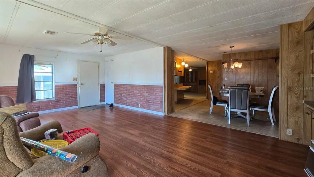 This home is in need of a lot of love, but there is a ton of potential here. This spacious 1344 sq.ft. golf course home sits right beside the #14 fairway. With a large island kitchen, separate living room, den with a wet bar, and Florida room, this home has room to entertain. Being sold strictly AS-IS, this house needs a roof, window repair, subfloor repair, and more. It is priced accordingly. Located in the 55+ Highpoint Community where you own the land, Low HOA fees, and tons of amenities, including golfing, pickleball, shuffleboard, a pool, and a range of community events.
