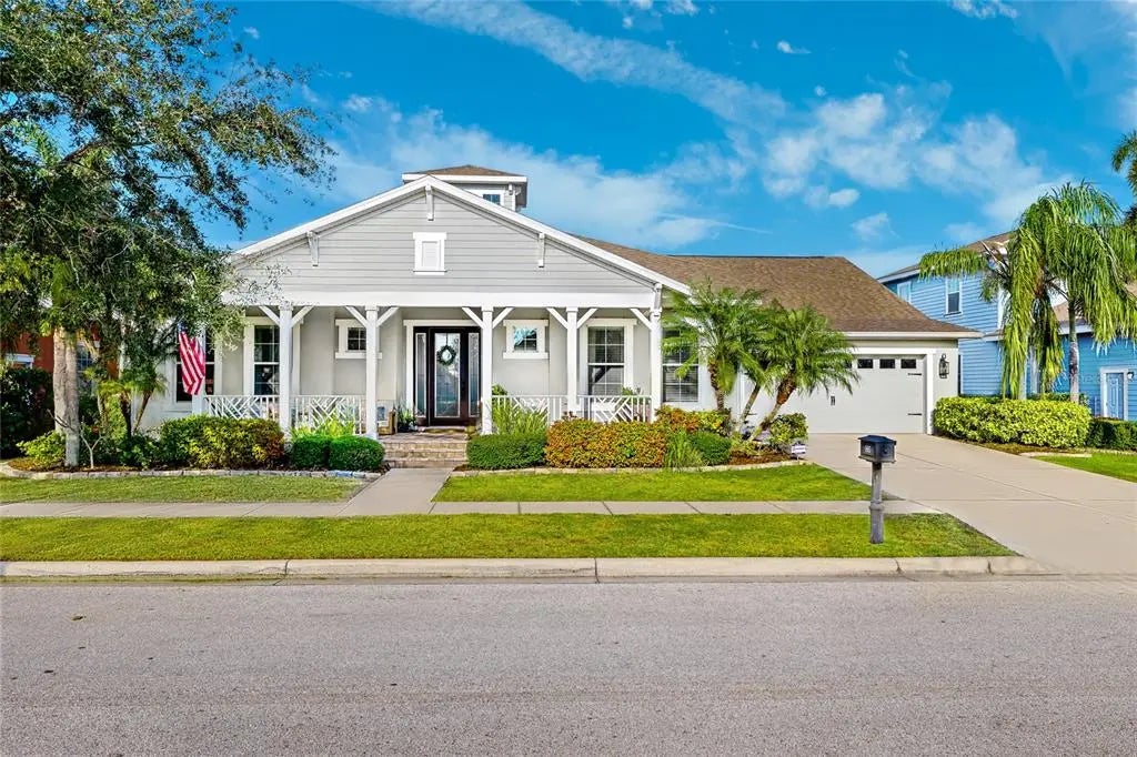 Must-See Waterfront Luxury Home in MiraBay. Don't miss your chance to own this stunning TURN-KEY waterfront masterpiece in the exclusive gated community of MiraBay! This home remained high and dry, sustaining no damage from either hurricane last year. Located on a quiet cul-de-sac, this impeccably upgraded SINGLE-STORY home offers 2,827 sq. ft. of luxurious coastal living with breathtaking sunset views. While this waterfront lot does not allow for a private dock, you’ll still enjoy serene water views and have the convenience of launching kayaks or stand-up paddle boards with easy access to Tampa Bay! This home has a unique and rare Cardel builder floor plan, featuring three bedrooms plus an office/den (easily converted to a fourth bedroom), 3.5 baths, and a spacious three-car garage with tandem option. Both guest en suites have their own full bathroom and walk-in closet, making it perfect for hosting or families. Step inside and be captivated by the grand 30x19 great room, highlighted by a breathtaking 28-ft vaulted cupola ceiling and engineered white oak flooring throughout. The gourmet kitchen is a chef’s dream, featuring a 12-ft African Dolomite island, soft-close cabinetry, newer stainless steel appliances, a 5-burner gas stove, and double ovens—perfect for entertaining! The primary suite is a true retreat with elegant tray ceilings, wainscoting, a designer feature wall, and custom soft-close storage. Two private guest suites each boast their own full baths and walk-in closets, ensuring comfort for family and guests. Outdoor Entertaining at Its Finest. The backyard is an absolute showstopper! Enjoy the saltwater pool (2019) with a new pump and a re-screened no-see-um lanai. Gather around the sunken gas fire pit with seating and a lighted walkway for magical evenings. The fully fenced backyard features maintenance-free turf, while the upgraded outdoor kitchen includes a built-in gas grill, beverage fridge, drink cooler with a drain, storage, and task lighting—making outdoor entertaining effortless. Some High-End Upgrades Throughout include: Natural gas Generac 24kW whole-house generator, New water heater (2024), water softener, and new HVAC system (2024), Surround sound throughout the home & patio speakers, Samsung LSP9T projector & 100” screen in the living room—perfect for movie nights! Designer feature walls with custom lighting, Upgraded window & door trim, Ring doorbell, and a security system. Live the Ultimate Coastal Lifestyle! MiraBay offers resort-style amenities, including a beach-entry pool with waterslide, lap pool, fitness center, tennis, basketball, pickleball, and kayaking on a 136-acre lagoon with Tampa Bay access. The community also hosts monthly markets, social events, and holiday celebrations. Located just minutes from Tampa, St. Pete, Sarasota, Gulf beaches, and Orlando’s theme parks, this home is truly a rare find! The current homeowner's flood insurance policy is assumable at competitive premium rate! Saving you money!! Schedule your showing today! You have to see this home in person as you will fall in love the moment you walk in! Motivated Sellers - Bring an Offer!