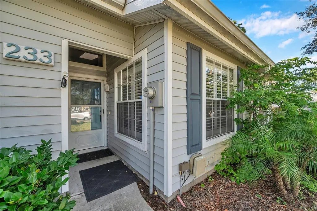 Get huge bang for the buck with this 2BR/2BA Villa. Located in a quiet community, this villa offers an amazing low-maintenance lifestyle. The Villa layout is perfect, with an ensuite primary & walk-in closet, as well as as high-ceilings in the living areas. You'll love the stylish finishes to include barn doors and designer light fixtures. New plantation shutters have been installed in windows, giving the villa a very high-end look and feel. The vinyl flooring goes throughout the home, with no transitions! You'll find a laundry closet just off the 2nd bedroom, washer and dryer are included in the sale. There's even a screened lanai to enjoy time outside. The community has a large heated pool, clubhouse, gym onsite. Your HOA fee includes community amenities, exterior maintenance, water, sewer and trash. A short drive across US19 is Anderson Park, with acres of trails to explore. Here's your chance to live the Florida lifestyle without breaking the bank! Easy to show and 3D tour is available.