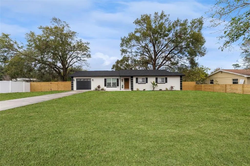 Step into this beautifully redesigned 3-bedroom, 2-bathroom home, set on a spacious 0.6-acre fully fenced lot with BRAND-NEW fencing for ultimate privacy. Every inch of this home has been meticulously updated, featuring a stunning modern interior design with an open floor plan that maximizes space and flow. NEW Windows, NEW Roof, and NEW HVAC duct work. New Tile throughout the entire home, New white soft close cabinets in the kitchen, primary bathroom and hallway bathroom, New windows in the entire home, Brand new garage door, Roof replaced - 2024 with permit, New septic tank being installed prior to closing, Fence installed around the entire property, New paddle switches, ceiling fans, light fixtures in all rooms (some with remotes), Backsplash installed in kitchen, Quartz countertops in the kitchen, hall bath and primary bathroom, New Brand Name hardware in the kitchen, hall bath and primary bathroom, New bathtub installed in hall bathroom, Tile in the hall bath and primary bathroom on walls, Custom shower door in primary bathroom, New closet doors and tracks, Bathroom light fixtures replaced, New toilets, Barn Door installed to sitting room, Landscaping, Kitchen appliances were replaced with stainless steel Samsung for the fridge, stove, microwave and dishwasher, AC is serviced and NEW duct work in the attic, Recessed lights switched out to LED energy saving lights, Door hardware and hinges replaced to Black Matt, Exterior paint and sealed on stucco, Interior paint throughout the entire home, Trimwork was replaced to 5" throughout the home, Garage floor painted with decorative flakes and New AC vents. The heart of the home is the gourmet kitchen, complete with luxurious quartz countertops, brand-new stainless steel appliances, and sleek white finishes that exude sophistication. The airy design and ample natural light create an inviting atmosphere, perfect for entertaining or unwinding after a long day. This property is a rare find with no CDD or HOA fees, offering you freedom and flexibility. The expansive yard has plenty of space to park an RV or multiple vehicles, making it ideal for those who love adventure or need extra parking. With low property taxes, this home is as budget-friendly as it is beautiful. Don’t miss your chance to own this turnkey modern masterpiece. Schedule your private showing today—homes like this don’t stay on the market for long!