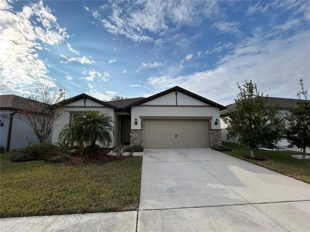 Priced Below Market Value. You are invited to Experience the Elegant & Spacious home nestled into the exquisite Gated Oaks of Pasco next door to The Silverado Golf & Country Club. Inviting drive with ample off street parking flanking this stylish residence. After passing through the stone lined portico, you are greeted with a gorgeous foyer boasting of high ceilings emphasized with a hint of light streaming through from the gorgeous view. Adorned with a warm touch from the pristine luxury vinyl plank flooring that runs throughout. The formal dining room just off of the kitchen and overlooking the elegant living room are perfect spaces for upscale entertainment while enjoying the screened back lanai; accessible through the large sliders that brighten these spaces. Elegantly Appointed, Bright and Open, this home also features a Large kitchen for the pickiest of Culinary Specialists; offering solid wood cabinetry, sink island, coffee bar, extensive stone countertops and sizable closet pantry. The large Island adjacent family room and sliders leading to screened back porch, are perfectly aligned for hosting friends and family for casual entertaining. The perfect location for sipping coffee, enjoying fall weather is the covered/screened back lanai. This porch is large enough to accommodate both dining and living areas. The sumptuous primary suite will accommodate large bedroom furniture; it is adorned with a huge walk-in closet, two sinks, and walk-in shower with a seat. This home emphasizes spaciousness, with it's split 2 bedrooms, open-plan living, exterior screen room and gorgeous entry hall. This home is equipped with a water purification system and classy plantation shutters. Oaks of Pasco is a retreat lifestyle offering an abundance of nearby activities. Just minutes for Wiregrass Mall, Tampa Premier Outlet Mall, Home Depot, Publix, Florida Medical Clinic/Urgent Care, Advent Heath Zephyrhills, The Sarah Vande Berg Tennis Center, Bike and Walking Trails and much more. Peaceful Living is the perfect description for this PET FRIENDLY community. Come discover the beautifully upgraded home!