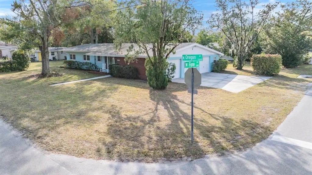 Step back in time in to this mid century home with vaulted ceilings, beautiful terrazzo floors, all the charm of yesterday but with newer windows. Enter the front door with one brick wall and clerestory windows on top to the vaulted ceiling. Look out the front window and the Babe Zaharias Golf course is across the street. There is a room divider to the dining room which also opens to the kitchen- all mid century style and working. In the Hall off the kitchen is the laundry then the hall to the den (growing up this was the youngest childs bedroom) and then the 3 rear bedrooms. The Primary bedroom has a full wall of closet space and an en suite bath with linen closet. The second bath is in the hall with 2 closets on both sides of the side hall to it, which could be used to expand that bathroom if wanted. For the Car enthusiast there's a 3 car garage WITH 2 storage rooms. Huge back yard - home is on a double lot AND is being sold with the additional vacant lot next door!! Corner lot- Golf course across street and vacant next door included- What a package!! Room sizes MOL to be verified by Buyer. Schedule your private tour today!