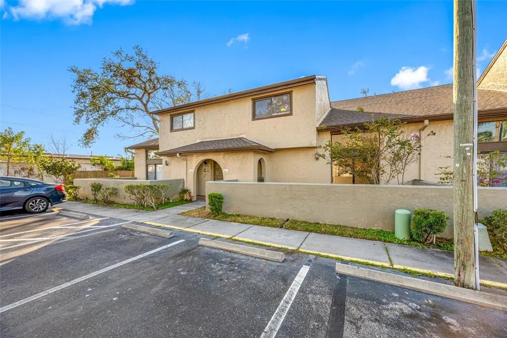 Welcome to the charming Via Verde condo complex! Updated 2-bedroom, 1.5-bath townhouse style condo that features an open living and dining area with vaulted ceilings and plenty of natural light. The kitchen boasts NEW CABINETS with plenty of storage and NEW Granite counter tops and a large pull up bar. The dining area conveniently opens to the rear courtyard. The rear of the condo supports the in-unit laundry closet including washer/dryer, plus additional storage. There is also a bottom floor half bath for your convenience. Both bedrooms are located upstairs with the main bedroom featuring dual closets and a sliding glass door that opens to the rear courtyard. The unit features two outdoor patios, perfect for enjoying the beautiful Florida weather. New Roof in 2022, HVAC 2019, newer electrical breaker box. Condo fee covers ground maintenance, building insurance, roof, community pool, water/sewer/trash. Steps away from the pool, clubhouse, dog park & tennis courts. Centrally located close to restaurants, shopping, 2 airports, downtown St Pete, Tampa and 10 miles to the sandy beaches.