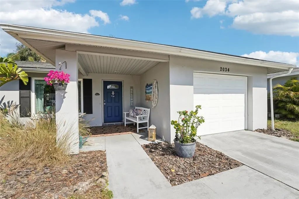 A Charming & Move-In Ready Home in the Desirable Greenbriar Neighborhood Nestled in the heart of Clearwater. This beautifully updated 2-bedroom, 1.5-bathroom home is a perfect blend of comfort and style--spanning just over 1400SQFT. Featuring a spacious 1-car garage with ample storage, this home has everything you need to live your best life. Step inside to an open-concept living and dining area that flows seamlessly into a large bonus room, ideal for an office, playroom, or additional lounge space. The recently renovated kitchen is a chef’s dream, complete with sleek marble granite countertops, modern stainless steel appliances, upgraded cabinetry, and a stylish backsplash. A large pantry and a separate laundry room add to the convenience. Retreat to your tranquil primary suite at the back of the home, complete with a walk-in closet, and views of your private backyard oasis. The second bedroom is located just down the hall next to the fully remodeled bathroom. Outside, the expansive, fully fenced backyard is perfect for entertaining with a new paver patio and a pergola with a built-in bar (installed in 2021), providing an ideal space for hosting friends or unwinding in privacy. Key updates include a newer roof (2019), refreshed ductwork, dryer, water heater, and insulation all replaced in 2019, ensuring peace of mind for years to come. The Greenbriar community offers fantastic amenities including a pool, fitness center, and clubhouse, all with low association fees ($140/yr). Plus, you're just minutes from shopping, Downtown Dunedin, the Pinellas Trail, Clearwater Beach, and the airport—everything you need is within reach! This exceptional property is NOT in a Flood Zone and did not experience any flood or hurricane damage!