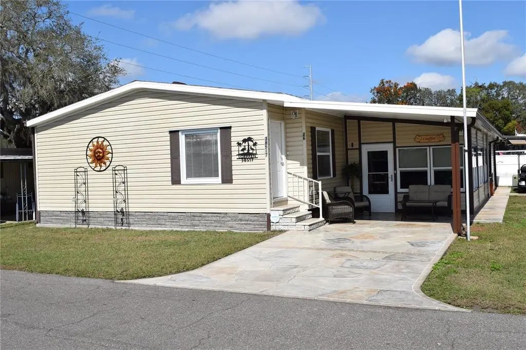 Welcome to this beautifully maintained, furnished home in Sleepy Hollow Mobile Estates, a quaint and friendly 55+ community. This inviting 3-bedroom, 2-bath residence features a new roof (2025) and a gorgeous, sunlit, enclosed porch complete with a built-in electric fireplace, perfect for relaxing year-round. Inside, you'll love the spacious kitchen with a cozy dinette, open living space, and beautiful laminate flooring throughout. The guest bedroom includes a convenient Murphy bed, offering flexibility for visitors or additional space. The home also includes an indoor laundry room and an oversized shed, providing ample storage. Don't miss this wonderful opportunity to enjoy peaceful living in a warm and welcoming community! Schedule your showing today!