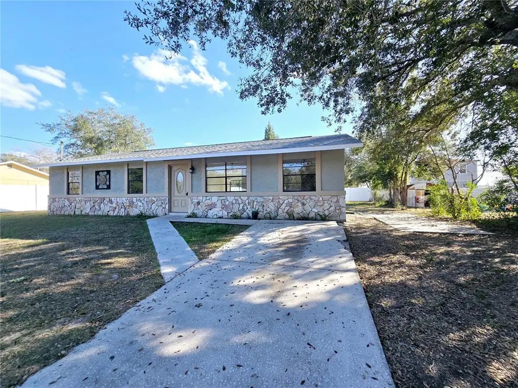 This great 4 bedroom 2 bath home is on a large, partially fenced lot. Extra parking pad with side entry, patio with built-in fire pit area, shed, and plenty of room to roam. Ceramic tile throughout the living areas and the bedrooms are carpeted. A bright, updated kitchen with a dining area leading to the patio, huge inside laundry, upgraded light fixtures and ceiling fans, and more. Enjoy the park and other neighborhood amenities. Super location close to I75, Downtown Brooksville, shopping, and restaurants.