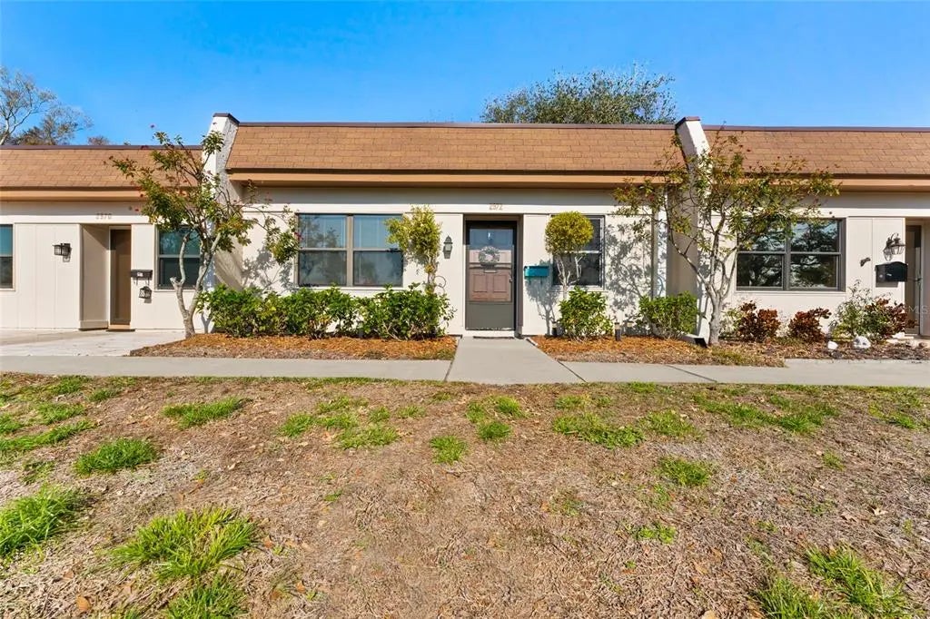 Come explore this charming 2-bedroom villa-style condo in Mission Hills of Clearwater, located in a vibrant 55+ community. Enjoy a clubhouse, special events, a community pool, and a shuffleboard court. The condo boasts an open, split floor plan for privacy, with an interior laundry closet featuring a stackable washer and dryer. The pass-through kitchen flows into a spacious dining and living area, ideal for entertaining. The living room features an elegant glass built-in center to showcase your special memories. The master suite includes an en-suite bath with a walk-in closet and a standing glass shower. The guest bedroom offers built-in cabinets and a countertop, making it perfect for an office and extra storage. A secondary bath is conveniently located for guest use. The unit comes with 1 carport space and is available for a 1-year lease. Plus, enjoy easy access to shopping and dining in nearby Safety Harbor!