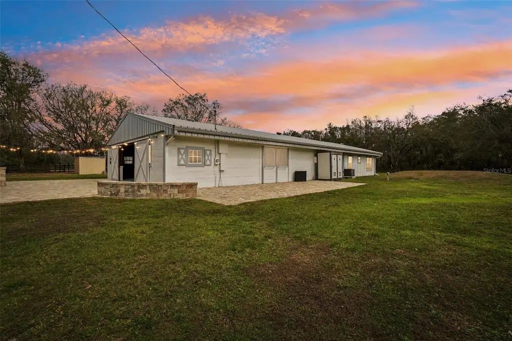 Welcome to 2040 Underwood Ln, a fully perimeter-fenced 10-acre property in Zephyrhills offering versatile opportunities for equestrian use, farming, or as a turnkey event venue. The property features three paddocks, a fully functional three-stall barn with direct paddock access, and multiple storage shelters/animal shelters. A large barn, currently used as a wedding venue, can be converted back into an 8-stall horse barn. Outdoor highlights include a gazebo overlooking the entire property, a fire pit, and a wraparound paver patio, perfect for entertaining or relaxing. The 2-bedroom, 1.5-bathroom home offers 1,216 sqft of living space, ideal for an owner's residence, guest house, or event operations. Whether you're looking for a private retreat, income-generating venue, or functional farm, this property offers endless possibilities—schedule your showing today!