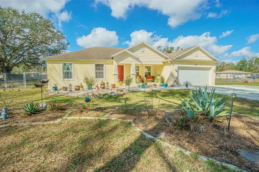 An ergonomically designed home for all generations, built in 2017 with thoughtful details for accessibility and future expansion. Positioned higher than the rest of the lot and graded for excellent drainage, this home ensures durability and comfort. The wide front steps provide ample space for a walker or wheelchair, making entry seamless for all. Inside, the spacious entryway leads to ceramic tile flooring that extends throughout the entire home. The open-concept kitchen and family room offer clear sightlines in all directions. Behind the drywall, a sturdy 2x6 support system is ready for a wall-mounted TV where the current unit is located. The office space can easily serve as a fourth bedroom. Each bathroom is equipped with a ceiling-mounted heater for added warmth during winter. One bedroom features a convenient pocket door leading directly to the bathroom, ensuring privacy and ease for guests. For those considering future enhancements, key upgrades are already in place. A blocked-off A/C duct above the back patio allows for an easy enclosure if desired, while built-in footers provide structural support for potential remodeling projects. The home is supplied with water that runs through a whole-house water softener, and the A/C, well, and septic systems have been consistently maintained and recently cleaned. A built-in wall pest system adds extra convenience. NO HOA, NO CDD, NO DEED Restrictions. Additional features include a dedicated electric vehicle charging station and ample acreage with space for an EDU, she-shed, or mancave. And let’s not forget the fruit trees and raised garden beds, perfect for those who enjoy fresh produce right at home. This home is a rare blend of accessibility, modern amenities, and future-ready design—offering comfort and versatility for years to come.