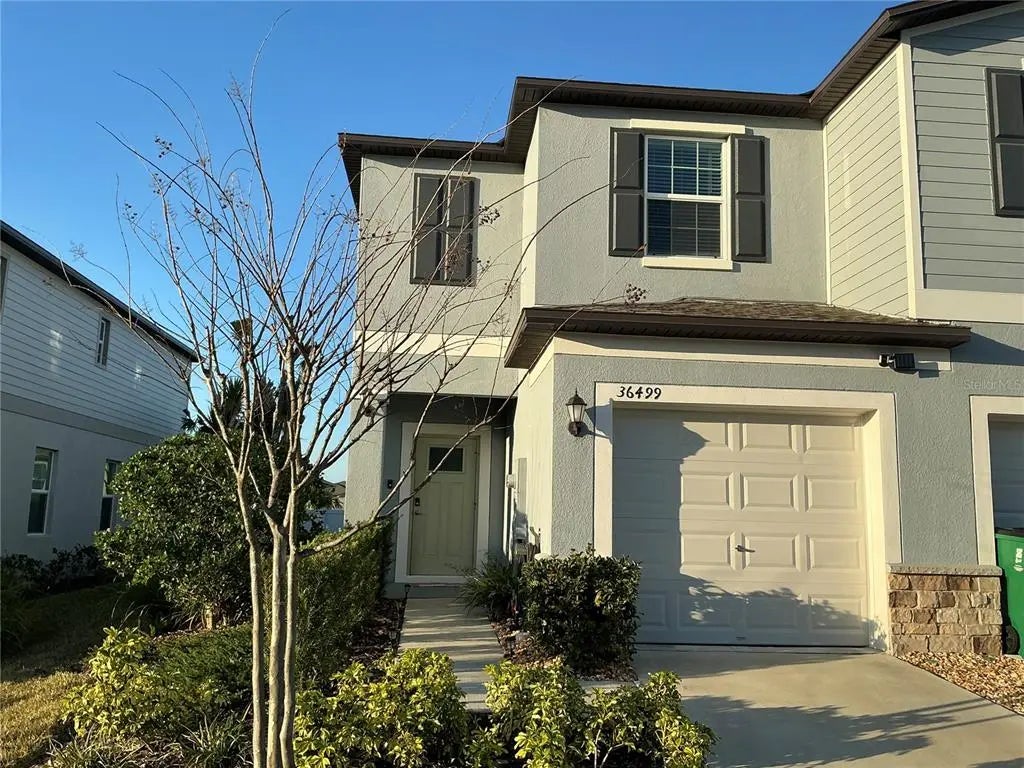 This nearly new, END UNIT TOWNHOME offers the perfect blend of comfort and style. With just under two years of age, this two-story townhome features an open floor plan, perfect for everyday living and entertaining. The spacious kitchen boasts sleek stainless steel appliances and granite countertops with plenty of cabinet space. Tile flooring runs throughout the main level, and the convenient half bath on the first floor adds extra practicality. Step outside to enjoy the relaxing screened lanai, offering the perfect spot to unwind or entertain while being protected from the elements Upstairs, you’ll find two generously-sized bedrooms, both featuring walk-in closets. The primary bedroom includes and en-suite master bath for added privacy. An upstairs laundry area makes chores easier, and a charming loft area offers flexibility for an office, reading nook, or an extra living space. This home also includes a 1- car garage and a parking pad right in front of the unit for easy access. Visitor parking is also available and not far from the unit. As an end unit, you’ll enjoy extra privacy and natural light, enhancing your living experience. Residents will enjoy the range of amazing community amenities, including a clubhouse with on-site staff, a fitness center, community pool, game room, a playground, and a grill area- everything you need to live in comfort and convenience. Fiber optic internet (5G) is included as well as the landscaping. This beautiful home is ready for you to move in and enjoy. Don’t miss out-schedule a tour today!