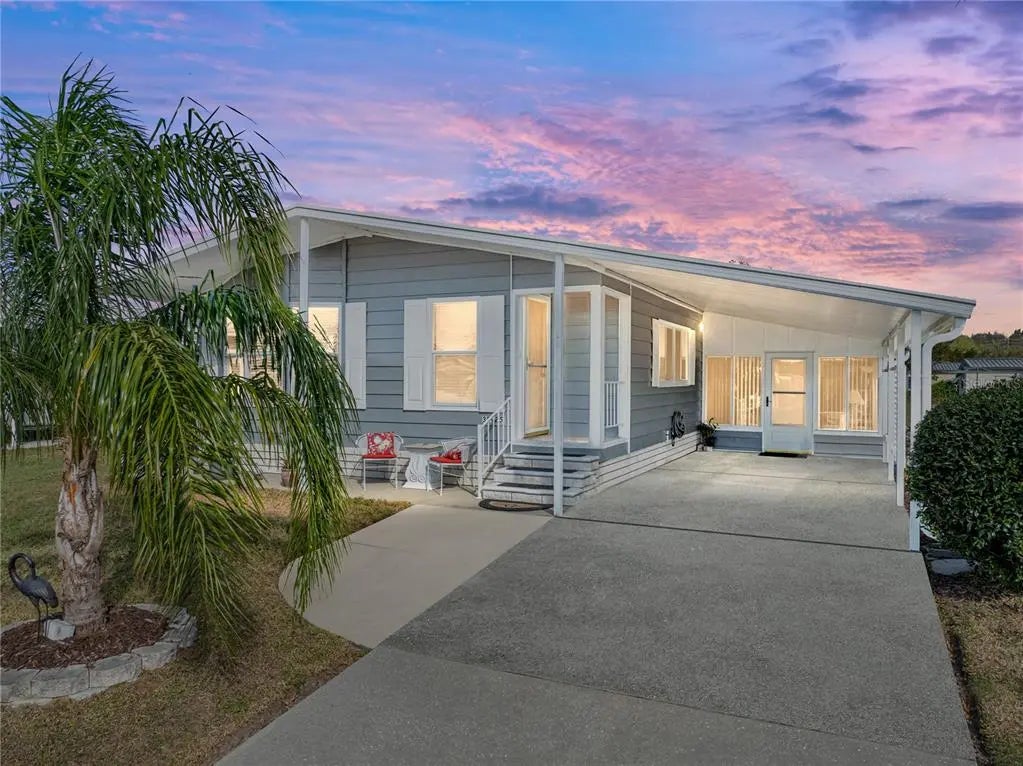 Your new, fully furnished home awaits within the 55+ community of Casa Del Sol! This 2 bedroom, 2 bath property has a NEW membrane roof, a 2023 AC, an all-season Florida room with heat and air, an extended back patio, and a spacious interior. Ideally set within walking distance from the pool, clubhouse, and shuffleboard court, this welcoming home greets you with a covered front porch, lovely landscaping, and a convenient carport that leads to the enclosed porch and bonus extra storage room. Vaulted ceilings, crown molding, wainscoting, 2 new ceiling fans, and generously sized rooms set the stage for a comfortable living experience. The galley-style kitchen streams natural light in through bay windows in the eat-in dinette. It features ample countertop prep space and cabinet storage, easy access to the formal dining room, and all of the appliances shown with the house convey, including the washer and dryer! The primary bedroom has new carpeting, dual built-in closets, a walk-in closet, and an ensuite bathroom with a walk-in shower. The secondary bedroom is near the guest bathroom and it also has a walk-in closet - there is so much storage in this home! Both bathrooms have new high-rise toilets and vanities. The ceilings have recently been painted, and a surge protector was placed on the AC unit for convenience. Relax outdoors on the expansive open patio complete with furniture and a grill, head down to the community amenities, or take advantage of the central Zephyrhills location, close to restaurants, shopping centers, entertainment, medical facilities, and more. Call us today for your private showing!