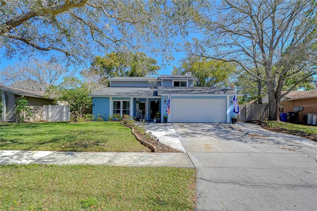 Nestled in the heart of Carrollwood’s highly desirable Country Place neighborhood, this remodeled 4-bedroom, 2.5-bath, two-story home PLUS an office/bedroom/flex room in the garage conversion, offers 1,917 sq ft of living space. A widened 2-car driveway welcomes you, while major updates (2023) provide peace of mind, including a NEW Roof (2021) and NEW Impact Windows (2024) NEW Garage Door (2024)! Inside, wide-plank laminate flooring, adds warmth and elegance throughout. Off the foyer, a spacious sunken living room sets the tone for comfort. Step up to the elevated dining room, which seamlessly connects to the oversized, showstopping gourmet kitchen —a dream for entertainers! This chef’s kitchen boasts a huge granite-topped island, sleek tall cabinetry with modern nickel pulls, granite countertops, a tile backsplash, and a built-in pantry with pull-out shelves for optimal storage. A stainless-steel elongated sink sits beneath a window overlooking the backyard, while an additional prep sink enhances functionality. High-end appliances, include a smooth cooktop with a stainless vent hood, a French door refrigerator, a refreshment refrigerator, built-in double ovens, and dishwasher. French doors off the kitchen open to a small screened enclosure on the side of the home, currently home to an array of caged birds. Adjacent to the kitchen, the family room features a charming fireplace and double French doors with a full side window, creating a bright and inviting space that leads to the fully fenced backyard. Step outside to enjoy the patio, enhanced by a NEW SunSetter retractable energy-efficient awning—perfect for outdoor shaded relaxation. The patio extends and wraps around both sides of the home, offering plenty of outdoor living space. The first floor also includes a remodeled guest bath (2023) featuring a granite-topped vanity and undermount sink. An inside laundry room provides added convenience, while a large under-stairs closet offers extra storage. The garage conversion has been transformed into a versatile space, ideal for an office/bedroom/flex room and additional storage. Ascend the wood staircase featuring a landing and quarter turn to the second floor, where the primary suite displays oak hardwood flooring and a remodeled bath featuring a granite-topped vanity, undermount sink, cabinetry with drawers, and a tiled tub-shower combo. Three additional spacious bedrooms with laminate flooring and another remodeled full bath (2023) complete the upstairs. Prime Location and Low Fees! Country Place offers LOW HOA fees and NO CDD, along with community amenities, including parks, playgrounds, tennis courts, and a picnic pavilion. This home is conveniently located near Carrollwood shopping, top dining spots, entertainment, Citrus Park Mall, the Upper Tampa Bay Trail, and major highways, such as Dale Mabry, the Veterans Expressway, and the Suncoast Parkway. Plus, Tampa International Airport is just minutes away! Don’t miss this incredible opportunity—Schedule your private showing today!
