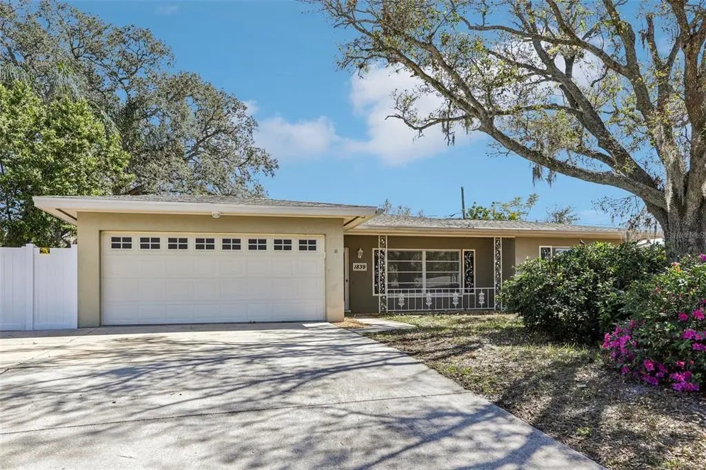 One or more photo(s) has been virtually staged. HIGH AND DRY solid block construction home, featuring 3 beds, 2 baths in a NON-FLOOD, NO EVAC zone with NO HOA FEES and 2019 ROOF, all saving you money!! This home in an interior Clearwater neighborhood boasts elegant ornamental metal work gracing the covered porch. Upon entering the light and bright interior will greet you in the large open living room and dining room space with Bamboo flooring where through the sliding glass door one can see right out to the Florida room, backyard and the BRAND-NEW VINYL FENCE that surrounds the home. The kitchen has been recently remodeled with NEW Stainless-Steel appliances and sink, New Slow-Close cabinetry, stylish Cabrera quartz countertops, enhanced by white subway tiles. This SPLIT FLOORPLAN home presents the primary bedroom on one side of the home for maximum privacy. This room is spacious and features an ensuite bathroom that has been REMODELED with a gorgeous porcelain tile walk-in shower, matching porcelain floor, wainscoting and new vanity. On the other side of the home sits the remaining two bedrooms that share a bath updated with shower over tub stylish, porcelain tile, matching backsplash over the modern, chic vanity and wainscoting to add that finishing touch. Exterior features include a brand-new surround vinyl fence, rain gutters and a recently installed parking pad for extra convenience as well as the TWO CAR GARAGE, parking is abundant! HVAC is 2017. Prime location conveniently located to airports, schools, restaurants and shopping! Just a short drive from vibrant Downtown Dunedin, Honeymoon and Caladesi Islands, Clearwater and Gulf Beaches! Don’t miss this opportunity to invest or live in this quiet, tucked away neighborhood!