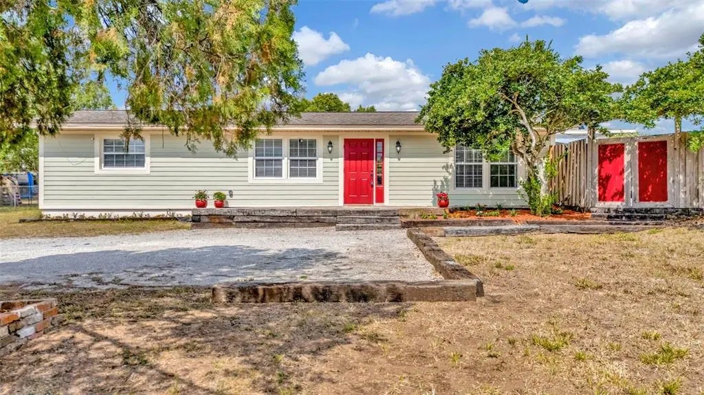 1/2 acre LOT on a CORNER with a detached workshop in the back with power and water, carport & storage shed. NO HOA! 4 bedrooms and 2 bathrooms with a POOL and POOLHOUSE! This floor plan is unique and flexible. The family room is tastefully finished with nice luxury vinyl and a French door backdrop that leads into the primary bedroom suite. En suite bathroom with tub and a huge walk in closet. The kitchen is garnished with wood cabinets, tin back splash and slate countertops. Character carries through to the breakfast room with brick facade wall and another set of French doors that frame the pool and entertainment deck. The third bedroom is right off of the kitchen area- French doors make it a transitional space perfect for sleeping or for a home office. An additional hallway with full bathroom and laundry area leads to the fourth bedroom tucked away from everyone else and with private access to the back yard and pool deck. Brick pavers line the pool and lead to a covered wood deck- all blend together to create the perfect space for outdoor fun at the fire pit, grilling or sun bathing area - lots of extra space for outdoor dining and relaxing. The POOL HOUSE, with its' cedar walls, provides room for a bar, foosball, pool table OR you might even use it for a fifth sleeping area as it is air conditioned by a wall unit. The fun does not stop at the pool though - walk on out to the detached workshop with metal roof, concrete floor, water, electric and a separate storage area too. Easy access through the side yard to wheel in all your toys or gadgets. Truly a 'one of a kind' home in the heart of Zephyrhills, close to quaint downtown, shopping and interstate. It's good to be home!