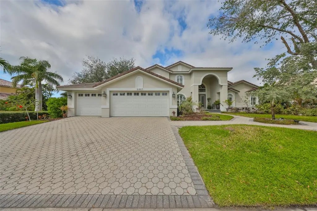 Discover this beautifully maintained 3-bedroom, 3-bathroom single-family home, perfectly situated on a prime corner lot in a sought-after gated community. Enjoy breathtaking canal-front views from your private screened-in pool which has Hayward Universal color logic lighting and a newer (2023) pool pump, offering the perfect setting for relaxation and outdoor entertaining. Step inside to find an inviting, open-concept layout with elegant tile flooring throughout. The spacious, gourmet kitchen with a double wall oven and living areas are designed for both comfort and style. Rest easy knowing this home features a brand-new roof (January 2025), adding peace of mind for years to come. There are custom window shutters and triple layer garage doors with LiftMaster openers. Your dock has composite deck boards replaced in 2021. The elegant tile roof was replaced in 2025 with Westlake Slate. Conveniently located with easy access to I-75, you'll be just a short drive from Tampa, Sarasota, and the stunning Gulf Beaches. Don't miss the opportunity to own this exceptional waterfront home schedule your private showing today!