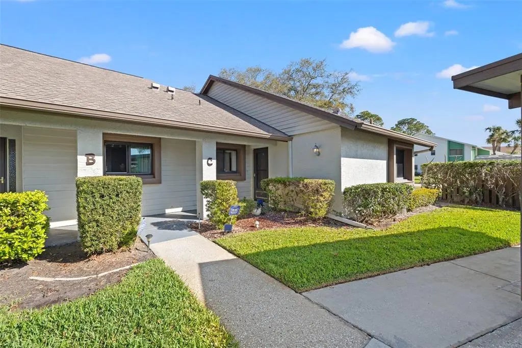 Welcome to Village On The Green, a highly desirable 55+ community offering a tranquil, maintenance-free lifestyle in a prime location. This fully furnished beautifully maintained 2-bedroom, 2-bath condo is an end unit, providing extra privacy and an abundance of natural light. With 935 square feet of thoughtfully designed living space, this home is perfect for those seeking both comfort and convenience. Step inside to discover an open-concept floor plan that seamlessly connects the spacious living room, dining area, and kitchen. The living space extends into a versatile enclosed bonus/study room, where you can enjoy breathtaking tranquil pond views—a perfect spot for reading, working, or simply unwinding in peace. The primary bedroom offers a private ensuite bath, ample closet space, and large windows that bring in soft natural light. The second bedroom is equally inviting, ideal for guests or additional living space. The condo also features an open patio, providing an outdoor retreat where you can relax and enjoy the Florida sunshine. Residents of Village On The Green enjoy an array of resort-style amenities, including a beautiful clubhouse with a library, fitness area, kitchen, and a spacious gathering room for social events. Outdoor enthusiasts will appreciate the shuffleboard courts and the pristine, resort-style community pool, where you can lounge and soak up the serene surroundings. Additional conveniences include assigned covered parking, extra storage, and low monthly fees, making this a fantastic opportunity for those looking to embrace a low-maintenance lifestyle. With its prime location, Village On The Green is just minutes from shopping, dining, top-rated medical facilities, and the stunning Gulf beaches, allowing you to experience the best of Florida living. Don't miss your chance to own this charming end-unit condo in one of the area's most sought-after 55+ communities. Move in ready and just waiting for you.