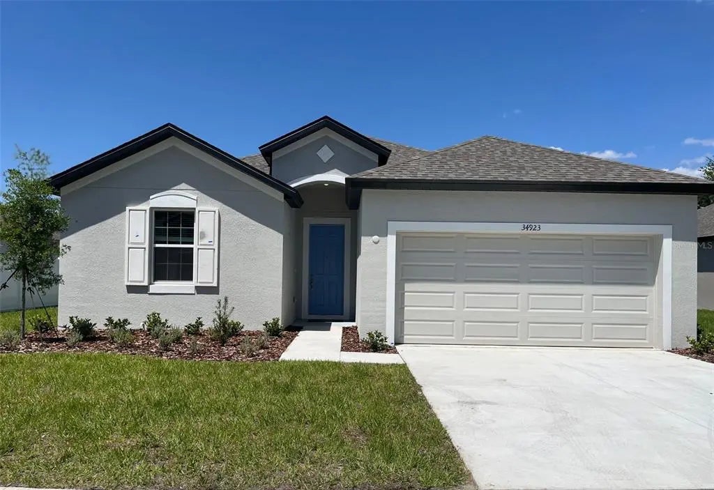 NO CDD! 100% Financing available. Your home will feature an 8' entry door, 11'4" ceilings, luxury vinyl flooring, a spacious great room. Eat-in kitchen with upgraded white cabinets & solid surface quartz counter tops & an oversized quartz bar with a deep under-mount sink, along with stainless-steel appliances including a fridge with filtered water & an ice maker. Your master bath will include quartz, upgraded cabinets & dual sinks. Blinds on all windows. Laundry room with included washer and dryer. Your newly built home is on a 70' wide home site, allowing 30' or more between your neighbors, & has an oversized patio & oversized back yard, with a stay cation view! Located minutes from Wesley Chapel's shopping, dining, and entertainment options. Looking for a peaceful, intimate all single-story home community, providing privacy, & security. Grab it now!