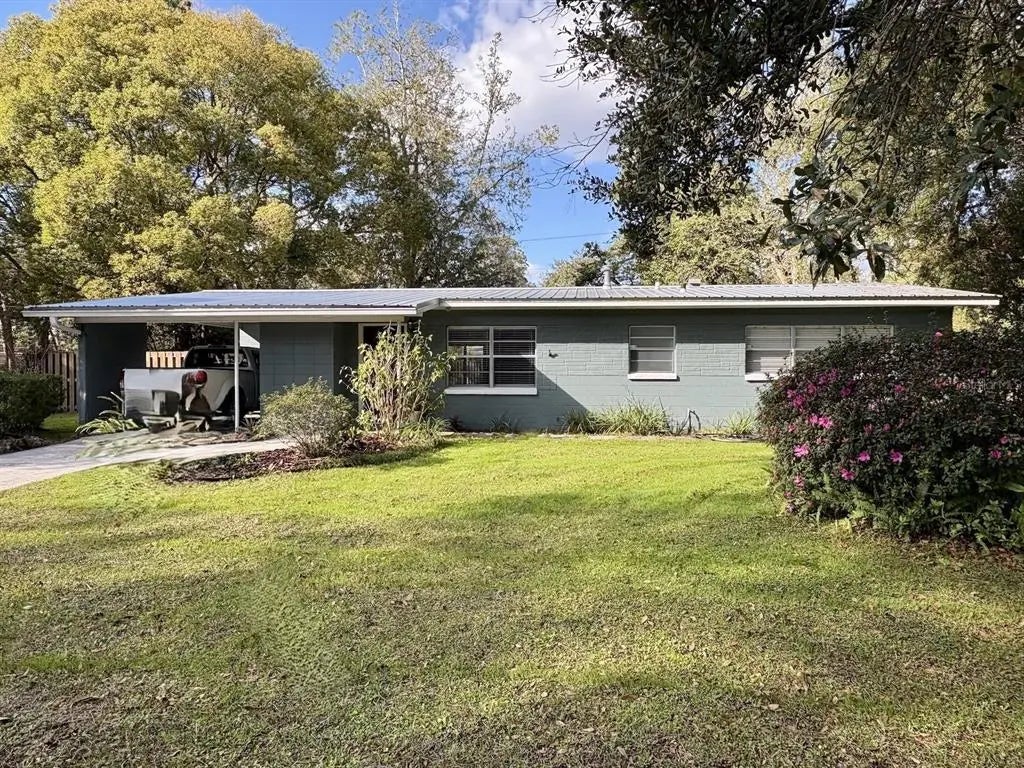 Move in ready! Sweet block home in Carol Estates with 3 bedrooms, 1.5 baths, plus a Florida room. Clean and cared for with blooming plants in front and back yard. Carport and two utility rooms. Metal roof. This home had a total kitchen remodel in 2021 with wood cabinets, Quartz countertops, and all new appliances. Additional updates in 2021 are: new HVAC with UV filter, bathroom remodel with new tub and tile shower surround, new sliding glass door to back yard. Rain gutters with leaf guards. More updates in 2024: New laminate wood plank flooring in bedrooms, new bathroom vanities, new interior doors. Tile flooring throughout living areas and bathrooms. Washer and Dryer in utility room off carport. Fenced sunny back yard that is great for gardening and pets. Easy commute to UF, Shands, and downtown. Convenient to several public, private, and charter schools. Several nearby public spaces including Citizens Park, Northeast Pool, Tom Petty Park, and Alachua Library Partnership Branch. Bike to UF, downtown, Grove Street Farmers Market.