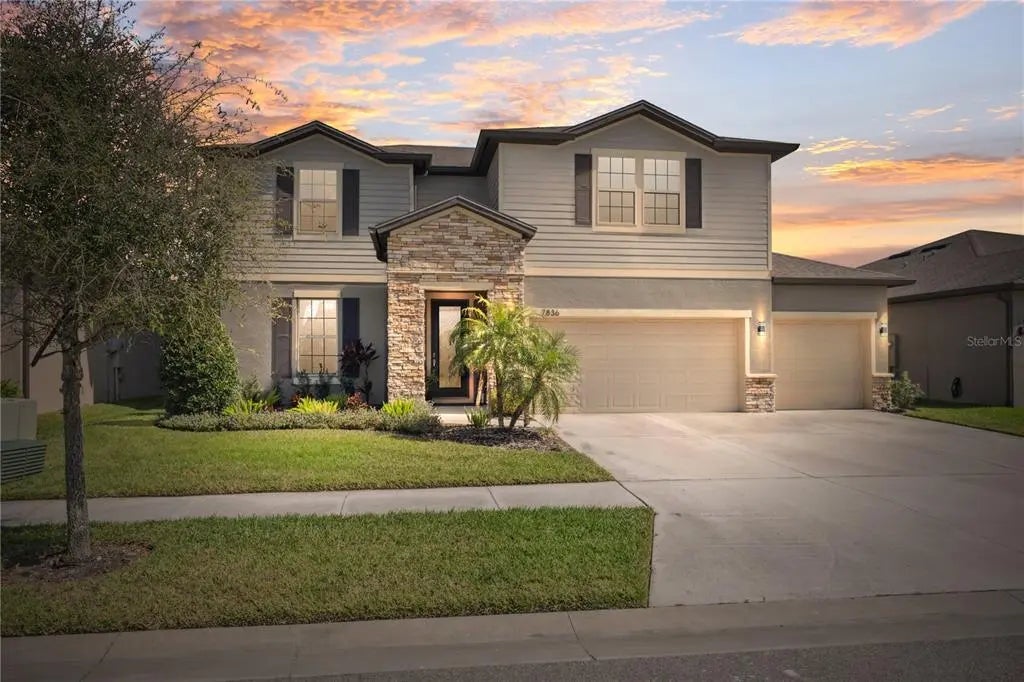 Welcome to Life at the Lagoon, where modern luxury meets resort-style living in the highly sought-after, gated Epperson Lagoon Community. This stunning 5-bedroom, 2.5-bathroom home, built in 2019, offers 2,885 sq. ft. of heated space and a total of 3,952 sq. ft., designed for those who love space, style, and an unbeatable location. Step outside to your own private oasis with a fully caged pool, added in December 2023, featuring full heating, a spa with jets, and customizable colored lights for a stunning nighttime experience—all controlled via an app for effortless convenience. The expansive lanai and large patio area overlook the peaceful pond—perfect for hosting, relaxing, and soaking up the Florida sunshine. The spacious, fully fenced backyard offers privacy and plenty of room to play, entertain, or let pets roam freely. Inside, the open-concept layout is both inviting and functional, featuring a gourmet kitchen with luxury white cabinets, modern fixtures, a screen fridge, and premium appliances, all seamlessly flowing into the living room, dining area, and lanai. The first-floor primary suite with stunning waterfront views creates the perfect retreat to start and end your day. A dedicated office, sprawling loft, and elegant stairway add flexibility, while every bedroom provides generous closet space. Additional upgrades include LVP flooring throughout, automatic shades, a cozy fireplace entertainment center, and a three-car garage with overhead storage. Living in Epperson means exclusive access to Florida’s first crystal lagoon, a breathtaking 7.5-acre tropical paradise featuring sandy beaches, a swim-up bar, private cabanas, paddleboarding, kayaking, and year-round resident-only events like movie nights, live concerts, and golf cart parades. The community is golf cart-friendly, with ultra-fi high-speed internet and cable included, solar-powered streetlights, parks, walking trails, and a dog park. Residents also enjoy top-rated schools nearby, including Innovation Preparatory Academy and Kirkland Ranch Academy of Innovation. Conveniently located just minutes from Krate at the Grove, an exciting outdoor shopping and dining destination, and a short drive from downtown Tampa, Tampa International Airport, and Orlando’s world-class theme parks, this home offers the perfect mix of luxury, convenience, and Florida’s best outdoor lifestyle. Don’t miss your chance to own this incredible home—schedule your private tour today!