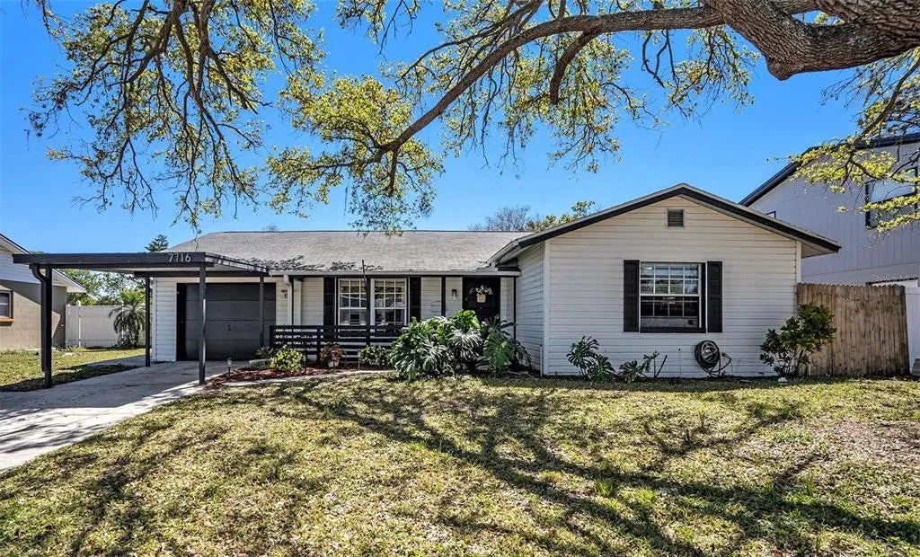 Price improvement...Welcome home! This updated 3 bedroom/2 bath home awaits a new owner. Step inside the living room flooded with natural light from the big picture window. The living area opens to the beautifully updated kitchen with black and white tile that pops next to the crisp white cabinets and quartz countertop. The kitchen has a black hexagon tile floor, stainless steel appliances, eat at bar, and large farmhouse stainless steel sink. The window over the sink offers views of the playhouse in the ample backyard. Next to the kitchen is the dining area with new sliding doors that open to the Florida room. This screened room allows the Florida breeze pass through the seating area with a modern black and white tile floor, and electricity...a perfect spot for entertaining. There is a door that opens to the outside to the stone pavers that run the length of the house and beyond, to the new wood fence. There is a section of the patio covered that offering a shaded area for grilling or just relaxing. The yard has avocado trees, a playhouse, and room for your pet to roam. The pavers continue through the left side gate and make a paved walkway down the side of the house and lead back to the garage. The garage leads to the laundry room inside. The primary bedroom is in the front of the house and has a custom closet that runs the length of the entire wall with sliding barn doors. Another barn door leads to the ensuite bathroom. A hall bath and two more bedrooms complete the home. Luxury Vinyl flooring runs throughout the main living spaces and bedrooms. A/C replaced 2022. Hot water heater 2024. Electrical updated to GFCI. No flooding during hurricanes.
