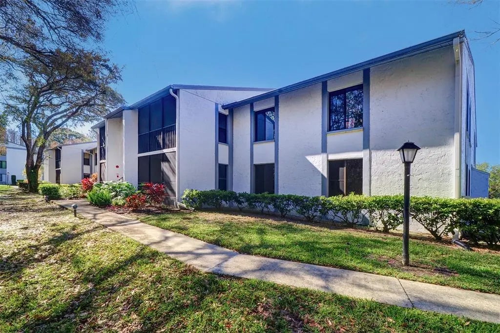 Welcome to Pine Ridge Village I, a resort-style community nestled in the heart of the East Lake Corridor! Flanked by the serene Brooker Creek Preserve to the east and picturesque Lake Tarpon to the west, this community offers a perfect blend of nature and convenience. Enjoy close proximity to top-rated schools, shopping, dining, a library, grocery stores, and more. This move-in-ready, second-floor unit features 2 bedrooms and 2 full bathrooms with vinyl flooring in the living room, den, and both bedrooms, while the kitchen and bathrooms showcase durable tile flooring. The open dining area includes a convenient pass-through breakfast bar to the kitchen, which is fully equipped with a refrigerator, microwave, and range. Relax on your screen-enclosed patio or take advantage of the in-unit laundry with a stackable washer/dryer. This unit is within walking distance to the clubhouse, resort-style pool, and spa.