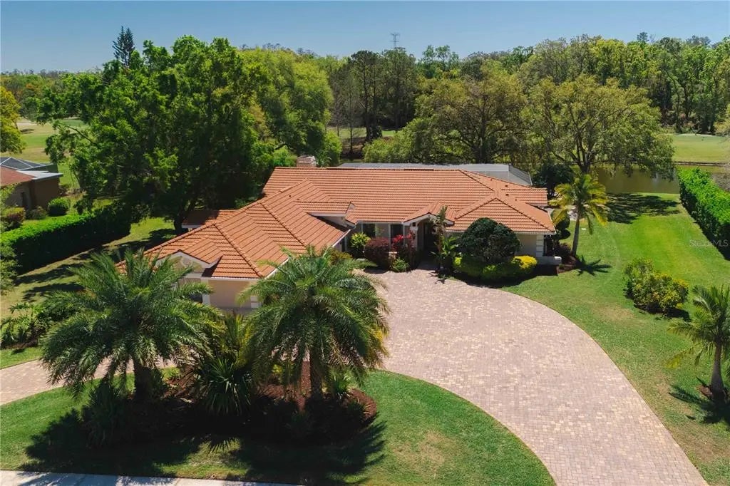 Nestled in the desirable, guard-gated Cypress Run Golf community, this four-bedroom, three-bath estate home is all about the breathtaking backyard and golf course views. Perfectly situated on an expansive lot, the property offers panoramic views of the private golf course lake and #6 tee of this premier championship course. Step outside to over 4,000 square feet of hardscape designed for pure enjoyment. A travertine-tiled expanded pool deck surrounds the oversized pool, offering the ideal setting for relaxing afternoons or entertaining guests. The striking outdoor fireplace adds a warm touch for evening gatherings, while the peaceful pond and serene water views create a true backyard retreat. Mature oak trees frame the property, providing natural beauty, shade, and privacy. A dedicated yard and drainage system ensures worry-free enjoyment year-round. Inside, the primary suite continues the resort feel with a spa-inspired bath featuring a luxurious dual shower and steam system. The open living spaces include a full bar area with a wine bar, butler’s pantry, and built-in beverage refrigerator, making entertaining effortless. A three-car garage and an additional side-entry garage offer ample storage or workspace options. Located just minutes from the Brooker Creek walking trails, Lake Tarpon, and area beaches including Fred Howard Park and Sunset Beach, this home offers the perfect balance of privacy and accessibility. With close proximity to shopping, dining, the Pinellas Trail, and top-rated schools, Cypress Run delivers unmatched luxury and convenience