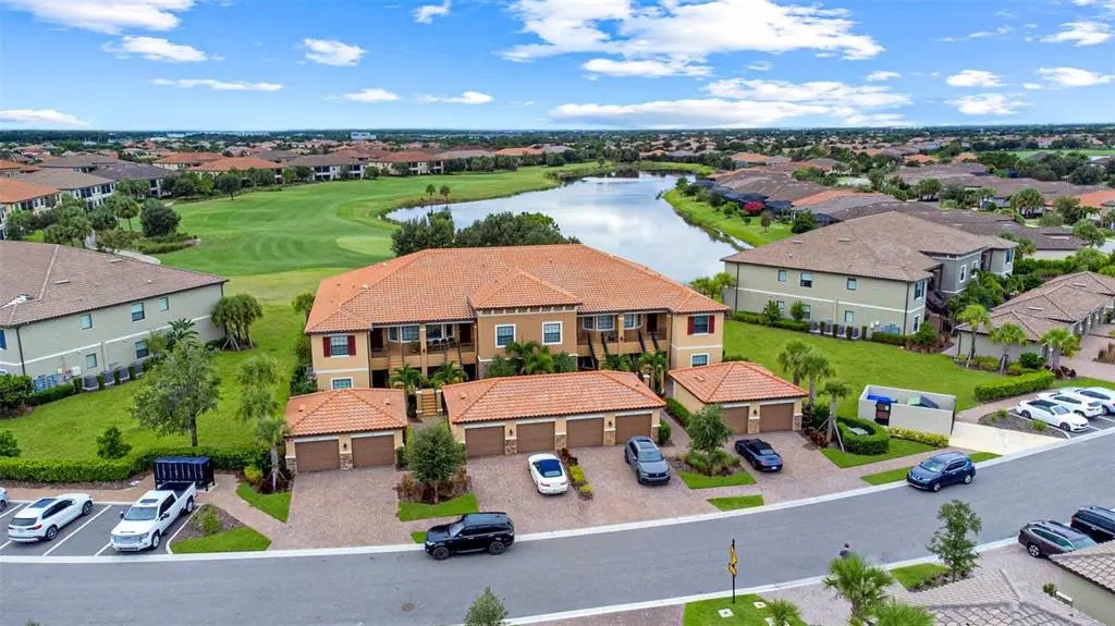 Experience the ultimate in resort-style living with this beautifully appointe second-floor end-unit condo in the highly sought-after Esplanade Golf and Country Club of Lakewood Ranch. Offering breathtaking long LAKE VIEWS with spectacular SUNSETS, this pristine 2-bedroom, 2-bathroom residence provides a rare combination of PRIVACY, natural light, and spaciousness. A perfectly situated tree/preserve adjacent to the beautiful lake and golf course provides the coveted “no rooftop” view from inside this beautiful home. Elegant mirror trim accents along the living room enhance the view from nearly every angle. Being an END UNIT, extra windows fill the OPEN CONCEPT living area with warmth and brightness, while soaring 14’ ceilings add to the luxurious ambiance. The well-appointed KITCHEN features an eat-in dining area for four and a generously sized island with additional seating, 42” white shaker cabinetry, a tile backsplash and under cabinet lighting, and pantry closet. Adjacent to the kitchen is a large DINING ROOM which can also serve as a versatile flex space, STUDY or den. Built-in shelving and cabinetry frame the large window, and provide a perfect place for storing all your extras. The serene PRIMARY suite is designed for relaxation, featuring space for a king-size bed, ample closet space, and a large en-suite bath. The large windows of the primary also overlook the lake and golf course. The GUEST BEDROOM with space for a queen-size bed is a welcoming retreat for family and friends. This unit also includes a detached garage ideal for your car or golf cart. As part of Esplanade Golf and Country Club, this maintenance-free home offers access to an array of world-class amenities. GOLF enthusiasts will love playing the stunning 18-hole championship course any time they want, as this condo has a DEEDED GOLF MEMBERSHIP. Indulge in the lagoon-style pools, enjoy friendly competition on the tennis, pickleball, and bocce courts, or stay active in two 24-hour fitness centers. The Bahama Tiki Bar and Barrelhouse full-service RESTAURANT and bar provide the perfect setting for socializing, while the luxurious spa and on-site hair salon allow for ultimate relaxation. Whether you’re searching for a seasonal retreat or a year-round paradise, this golf deeded condo is ready for you to move in and start enjoying the Florida lifestyle. Schedule your private showing today. (Note: Furniture may be purchased separately)
