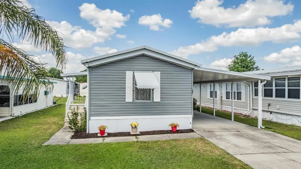 Welcome to Tippecanoe a 55+ community where you own your own land with a low HOA fee of just $80/month, which covers water, sewer, trash, and access to fantastic amenities like the neighborhood heated pool, clubhouse, and shuffleboard and is Golf cart friendly. This spacious 2000 single wide has 1056 sq ft of living space plus a 22x12 Florida room with a shed/workshop and a golf cart shed in the back. This home has been freshly painted outside with new skirting. A/C is new in 2024. Inside you will find vaulted ceilings with laundry in the kitchen. Split bedrooms with the primary in the back of the home. A large bathroom with a garden tub and an ex large walk-in closet. The second bedroom is in the front with a full bath just right out side the door. The community also offers boat and RV storage, you'll love the value and lifestyle this community provides. Easy commutes to Tampa and Orlando. There is also tons of local shopping and restaurants. Don’t miss the opportunity to make this delightful home your own!