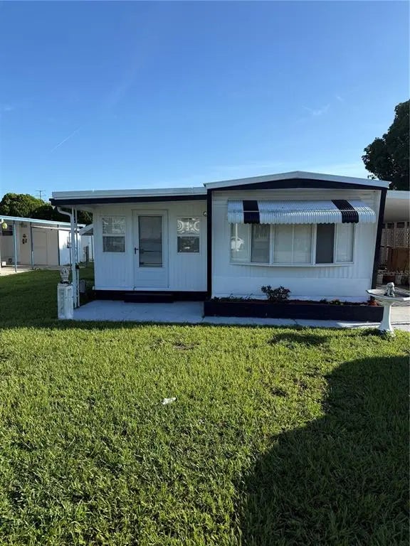 Own your own land with this two bedroom 1.5 bathroom mobile home in PALM ESTATE 3RD ADD. No HOA or deed restrictions here. Step inside to a spacious living area, with two bedrooms and an updated main bath just off the living space. The central kitchen and dining area create the perfect spot for entertaining and gathering with family and conveniently located It features a split floor plan, utility closet and laundry room with a stackable washer and dryer, a large Florida room The hall bathroom was remodeled in 2024 and has a 2 NEW VANITY . Also, in 2024 new vinil beautifully flooring was installed in the two bedroom, NEW 2025 CENTRAL AIR CONDITION ADDITIONAL BEDROOM UNFINISHING AREA CAN BE COMPLETE LIKE 3 BEDROOM , hallway, kitchen, and living room. The kitchen was remodeled in 2023 and features solid countertops, a snack bar, and soft close cabinets. The Roof is approximately two years old, and the water heater four years. There is a sheds n the back yard for additional storage.