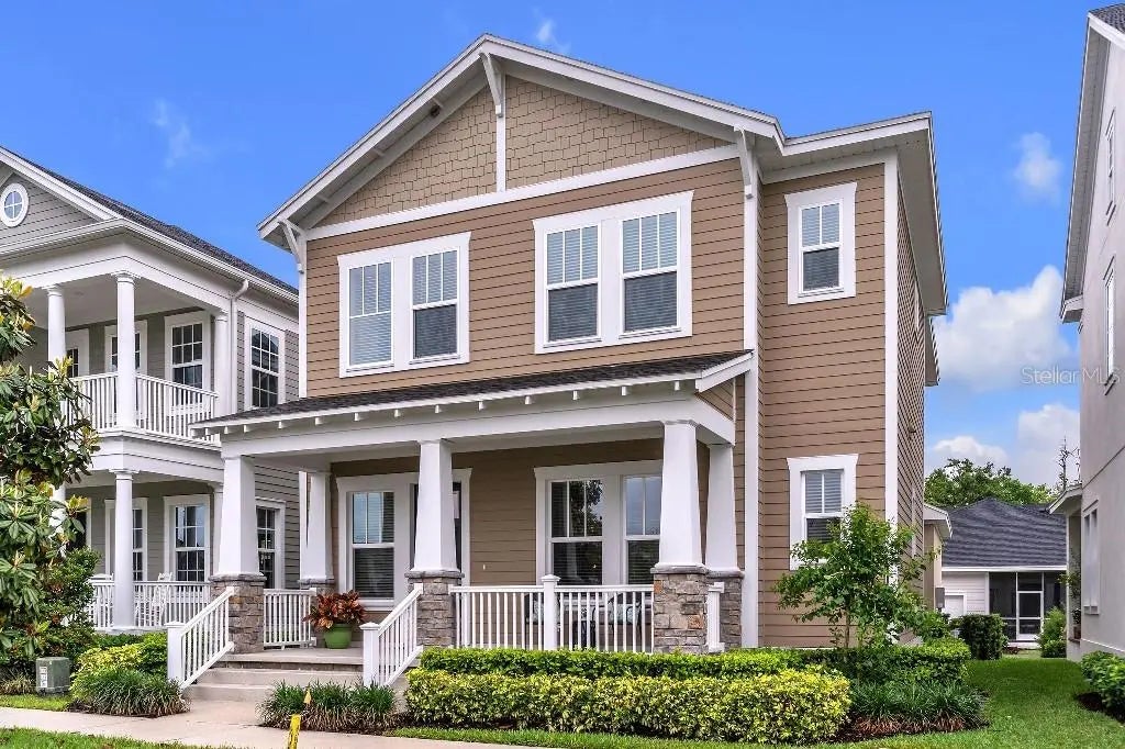 Welcome to your new home! This is an exceptional opportunity to own a newly constructed home situated in the beautiful community of Island Village in Celebration, Florida. This home can be your perfect primary home, vacation home, or work from home haven. This home was built in 2023 and boasts 5 bedrooms, 3 bathrooms and a second-floor loft. Upon entering, you will be greeted by a grand foyer with a vaulted ceiling entryway, luxury vinyl flooring, and upgraded stair railing. Other key home features include: Designed Layout: Open concept living with abundant windows and natural light, creating an inviting atmosphere for both relaxation and entertainment. Gourmet Kitchen: Features beautiful 42-inch white cabinets, stainless steel appliances, herringbone tile backsplash, granite countertops, pulldown gooseneck faucet, and GAS range stove. The large kitchen island provides ample room for meal prepping and serving food. Pantry: Large walk-in pantry with sleek and stylish custom shelving by California Closets ensures every inch of your pantry is well organized having designated spaces for different food categories and small appliances. Master Suite: The second-floor primary suite is a true retreat, complete with oversized windows, recessed lighting and tray ceiling. The primary bath has stylish laminate flooring, quartz countertops, dual vanity, and a frameless glass shower. Master Closet: Offers a boutique style walk-in closet designed by California Closets allowing for optimal use of space and reducing clutter. Additional Bedrooms & Bathrooms: In addition to the Master Suite, this home features 4 additional bedrooms and 2 additional full bathrooms, offering ample flexibility to accommodate a growing family, home office or a dedicated guest room. Loft: Step into the inviting second floor loft perfect for use as a TV lounge for family night, gaming area for endless entertainment, or a peaceful reading retreat to unwind with a good book. Outdoors: The lanai provides an extension of your indoor living area, allowing you to enjoy the outdoors while still being sheltered from the Florida elements. This home offers an added bonus by having Magnolia Park situated in front of the home offering lush green space and playground perfect for relaxation and bonding moments with children and relatives. Garage: Features a built-in EV charger for convenient vehicle charging, durable epoxy flooring, and an extended space that can utilized for additional storage, small gym, or workshop area. Prime Location: For fitness and relaxation, the clubhouse is just a short walk away, featuring a nicely equipped gym, a zero-entry pool and recreational room. You’ll also have easy access to the Celebration Town Center, where you can enjoy a variety of restaurants and community events.