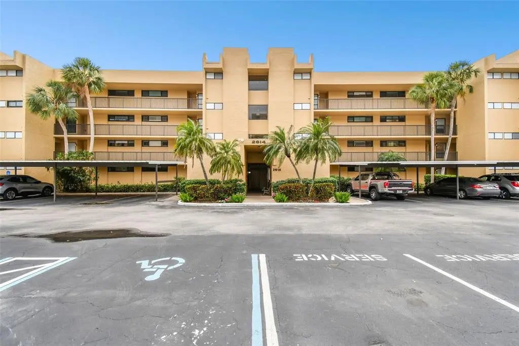 Welcome to this spacious 2bdrm/2bath 2nd floor condo with enclosed lanai on a beautiful 24 hr guarded 18 hole golf course community along Tampa Bay! Enjoy breakfast in the eat-in kitchen with ample cabinet space and granite countertop. Entertain in the living/dining combo space with built-in shelves and sliding glass doors to the fully enclosed lanai. The large primary bedroom has a large walk-in closet with separate sink and vanity area from the water closet and shower. The guest bdrm has privacy windows at the ceiling and large closet. The guest bath has tub with shower. Unit is sold furnished or unfurnished. The private secured laundry room is right across the hall and has new washer and dryer and storage space. Assigned covered carport space is included. This building is conveniently located at a short distance to the pool and recreation facilities as well as the golf pro shop and Bayview Grille restaurant and bar. Memberships to the golf club are available as well as pay as you go option. The Cove Cay Marina offers various boating amenities for fee. Cove Cay is located near shopping and access to major airports and the beaches. Enjoy golf, boating, poolside and strolling through this beautiful community on Tampa Bay.