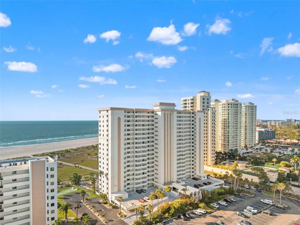 5th floor END UNIT with direct oceanfront Gulf views, located in Landmark Towers on the famous Sand Key Beach. This 2-bedroom, 2-bathroom condo offers 1,111 square feet of living space and features granite countertops, stainless steel appliances, updated bathrooms with glass-enclosed showers, LVP flooring, and an extended master closet for additional storage. The primary bedroom includes a walk-in closet and sliding glass doors leading to a private balcony with unobstructed Gulf views. Located on the south-facing end of the building, this unit provides enhanced privacy and panoramic coastal views from the main living areas. Impact-resistant double-pane windows for energy efficiency and peace of mind, and the clean interior design makes it ideal for seasonal use, investment, or year-round living. Community amenities include a HEATED POOL, SPA, TENNIS COURTS, SHUFFLEBOARD, BBQ GRILLS, and a PRIVATE BEACH RESERVE WITH DIRECT GULF ACCESS via a boardwalk through the community’s conservation area. A PREMIUM COVERED PARKING SPACE NEXT TO THE ELEVATOR is included. The monthly condominium fee covers WATER, TRASH, BASIC ELECTRICITY, CABLE, INTERNET, EXTERIOR MAINTENANCE, and 24/7 SECURITY WITH GATED ENTRY AND ON-SITE MANAGEMENT. Landmark Towers is located just across the street from Sand Key Plaza, offering convenient access to shopping and waterfront dining—including the famous Columbia Restaurant—just steps away. Approximate travel times: 5 minutes to Clearwater Beach, 15 minutes to St. Pete–Clearwater Airport, and 30 minutes to Tampa International Airport. Identical 5th floor END UNIT #508 (MLS# TB8374248) is also available and can be purchased together as a package opportunity. Available for fast move-in! Schedule your showing today to tour both condos.