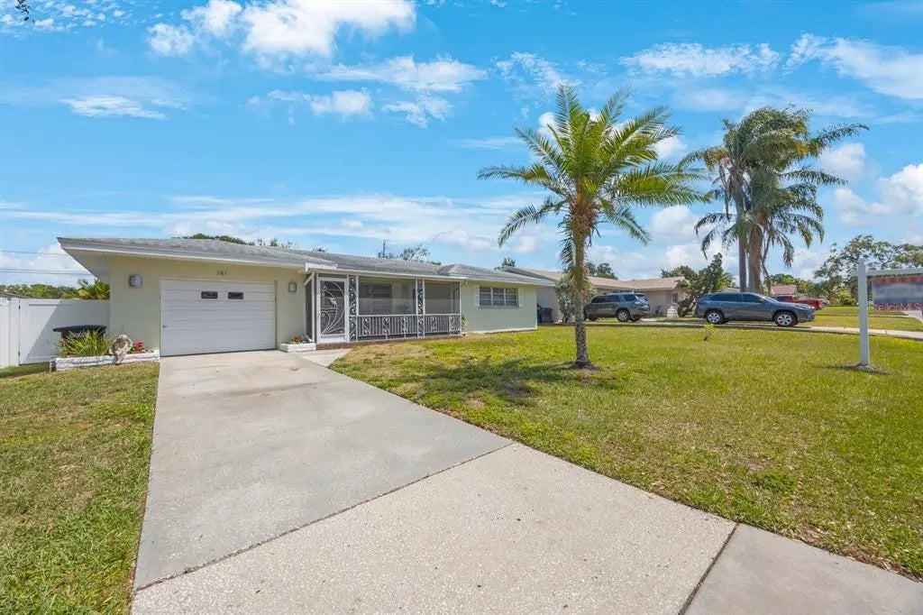 "Classic Old Time Florida" home with polished terrazzo flooring, spacious rooms and jealousy windows. This block construction home offers Large living area and spacious bedrooms with 3 new ceiling fans. Convenient kitchen with newer refrigerator leads to large, open dining and then to "hobby room" back porch not counted in square footage, ideal for the artist or can add heating/cooling and made into a 3rd bedroom or office. Enjoy the Picturesque front porch and the nicely fenced, private back yard with your family. Garage houses washer dryer and your vehicle plus tons of storage. In addition there is plumbing in with old time garage bath and shower which could easily be renovated for use. *Note garage bath fixtures & plumbing "as is" not used. *Note Home was recently connected to public sewers for approx. $11,000. (NOT ON SEPTIC as others in area are!) It also has a newly redone flat roof on porch. Quiet residential street. Home sold "as is". Present all offers.