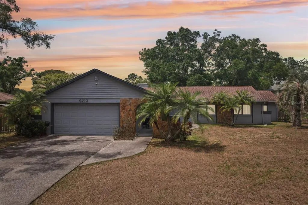 Welcome to this beautifully designed 4-bedroom, 2-bathroom home filled with natural light and modern charm—with no HOA. A welcoming open front patio leads into a spacious interior featuring vaulted ceilings and an airy layout. The generous living area offers a cozy fireplace, perfect for relaxing or entertaining. The kitchen is both stylish and functional, with a breakfast bar, stainless steel appliances, and sleek grey cabinetry. A formal dining area adjacent to the kitchen makes hosting easy. The spacious primary suite provides a private retreat, complete with a luxurious ensuite that includes a dual vanity, soaking tub, and separate shower. Three additional bedrooms share a full bath, offering space for guests, hobbies, or a home office. Unwind on the screened lanai overlooking the fully fenced backyard—ideal for outdoor enjoyment. A 2-car garage adds convenience and extra storage. This home combines comfort, style, and freedom with no HOA restrictions!