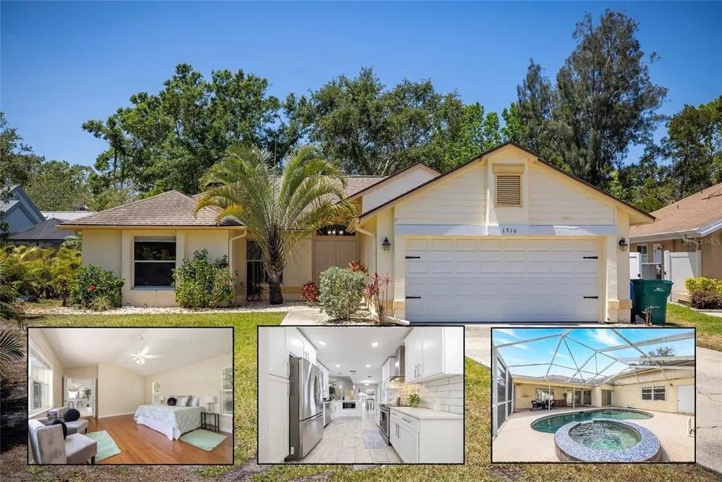 Tucked away on a peaceful cul-de-sac in Longbrooke, this home is the largest you will find in this beautiful community! Featuring TWO primary suites, both with access to the screened-in pool, this is the perfect home for multi-generational living! Updates galore – Updated Kitchen with quartz countertops and Stainless Steel Appliances, all 3 Bathrooms are updated, the AC’s are newer (2022, 2018) and Water Heaters are newer (2024, 2018). The pool pump was replaced in 2022, and the screened-in pool has a newer pool heater that is 4 years new! The flooring is beautiful and easy-to-maintain tile throughout the living areas, and the hardwood in the bedrooms are in great condition. Both Master Bedrooms have large walk-in closets, and are separate from the guest bedrooms for maximum privacy! The primary Master Bedroom has a large soaking tub with a separate stand-up shower. The open floorplan is inviting, and makes a great space for entertaining, with views of the private pool from every room! There is a bonus air-conditioned space off the pool area that makes for a great office, fitness room, or storage space for sensitive items that you don’t want stored in the garage. The pool area is spacious, with plenty of room for outdoor gatherings. The inside laundry room is ample in size, with lots of extra storage space. THIS HOME SURVIVED BOTH HURRICANES HELENE AND MILTON WITHOUT DAMAGE, AND NO WATER INTRUSION! Also included are custom-fit window boards, labeled for each window and stored in the garage. The location is unbeatable – located close to our beautiful Florida Beaches, only minutes to shopping and endless restaurants, only a 10-minute drive to PIE International Airport (will be cut in half when the construction at Whitney and Wolford Rd is completed), and under 30 minutes to Tampa International Airport. You won’t find another home like this in the heart of Clearwater. Make your appointment today!!