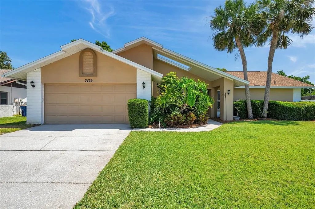 Great location, in a non-evacuation zone. The home is storm-ready, with hurricane impact sliding glass doors in the family room, living room, and master bedroom. Lightweight Kevlar fabric hurricane shutters for all windows are easy to install and remove when needed. Plus this home is convenient to everything. If you love the beach, you are only 13 miles away from the famous Clearwater Beach and only 7miles from the Honeymoon Island. If you love shopping, dinning and going to the movies, you are only 3miles away from Countryside Mall. If you love outdoor activities such as swimming, walking, biking, tennis and playgrounds, look no further than your own backyard. This 4 bedroom 3 bathroom ranch style home has a fenced in backyard that opens to neighborhood park with a quarter mile loop. The home's layout accommodates all stages of life with an ensuite on one side of the house and the master bedroom on the other. The master features not only a walk in closet but also an oversized closet and linen closet. It opens up to the serine lanai giving it nice natural light. The ensuite's bathroom has a walk in shower and its own private entrance to the pool. The 3rd bathroom features a tub and is centrally located not only between the two bedrooms but also just off the kitchen. The Kitchen opens into the family room and has a great view of the pool. The large pool can be seen throughout the home which is a great feature for a family and is a pleasant ambiance for everyone. The must have home office features French doors and a whole wall shelving unit. Storage space is conveniently located throughout the house, including garage shelving, kitchen pantry, laundry room closet and three linen closets. *New roof in 2022; all three exterior doors (front, garage side, 2nd MBR) replaced with impact doors in 2024. The whole interior freshly painted. New carpet in the 3 bedrooms.