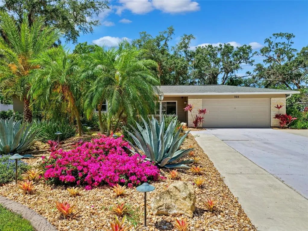 *Interior rooms have been repainted 15 & 16 July 2025! All neutral colors now *Seller offers one year home warranty, ShieldPlus coverage, which includes; Re-key service, HVAC, Plumbing, Electrical, water heater, kitchen appliances, washer, dryer, ceiling fans and more!* - The home appraised for more than the list price! - This is YOUR chance to own this charming 3-bedroom, 2-bathroom concrete BLOCK residence on a nearly 18,000 Sq Ft, fully fenced in, corner lot. Ready to be fully enjoyed Located on a private circle street, the home welcomes you with an expansive driveway and an oversized 2-car garage. The beautifully landscaped front yard (2023) features remote-controlled lighting that adds to the home’s curb appeal. Step onto the covered front patio and step inside to find an inviting interior with a functional layout. The primary bedroom includes an ensuite bathroom and spacious closet with build-ins. Continue through the dining room into the spacious kitchen and a cozy family room, where you'll find warm wooden flooring, a gas fireplace, built-in bookcases, and a lighted curio cabinet. Natural light pours in throughout the home. Enjoy true Florida living with the huge backyard, complete with a vinyl fence and separate gate (2018) - NO HOA - Enjoy your morning coffee on the covered back patio. This home truly has it all! Key updates include 2018 windows, a tankless gas water heater (2021, propane), Leaf Filter gutters (2021), electrical meter (2020). The home has been replumbed and equipped with a whole-home surge protector. Exterior paint has been applied in 2021. The kitchen and bathrooms feature maple cabinets and granite countertops; timeless and elegant. Bonus features: surround sound speakers, subwoofer, and receiver—all connected and ready for the new owner to enjoy. Don't miss out on this Florida dream home! -- living room photo has been virtually staged and 2 bedroom photos - Back on the market; buyers' financing fell through at the very last minute.