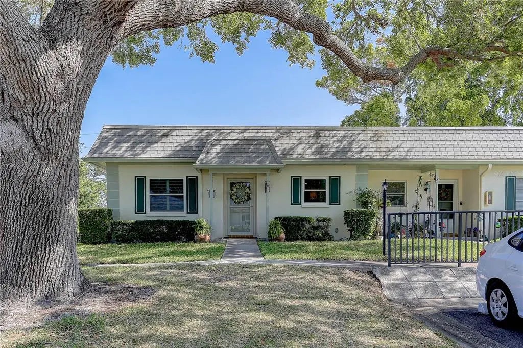 Every once in a while a truly magnificent listing becomes available. That is this property, a complete remodel where no expense was spared. 2 bedrooms and 2 baths, 1,180 s. Ft. of living area. An end unit villa in the 55+ condominium community of Normandy Park Oaks off of S. Highland near Lakeview Rd in beautiful Clearwater, Florida. As you park and walk to the front door under the shade of a grand oak tree, you enter the villa through the replaced glass storm door and a replaced front door to the foyer with added sconce lighting on the wall. You immediately notice the wood look laminate throughout and the stained and varnished tongue and groove real wood planked ceiling. The kitchen is to the right, light grey cabinets with beautiful granite countertops. Bar seating at the peninsula. As you check out the cabinets and start opening doors you find every possible cabinet add on. 2 lazy susans, 2 pots and pan drawers, a spice cabinet next to the range, and then a corner cabinet with two hydraulic chrome shelves that pop out for access (really cool). You open the pantry cabinet to find pull out trays from floor to ceiling. Soft close hinges on all drawers and doors. High end stainless steel appliances. Crown moldings and light rails on all the cabinets. I rarely see this quality and custom features, even in multi million dollar homes. The living room is really good sized and connects to the dining area. There are no less than a dozen recessed can lights in the ceiling. Crown moldings around the top and a custom wall paint finish that I have never seen before. The lighting fixtures and ceiling fans are all very high end and beautiful. The florida room continues on across the back of the villa with french doors leading out to the open patio. The french doors and windows have all been replaced with hurricane rated and impact resistant insulated glass. Both bedrooms have their own baths and are separated from the living room by pocket doors. Both bathrooms have had extensive remodels with custom tile, cabinetry, countertops and vessel sinks. A washer and dryer hookup was added in the guest bedroom closet. This is one of those properties where you want to really take your time and view all the professional photos….they tell the story. Then call your Realtor and make an appointment to see this exquisite villa.
